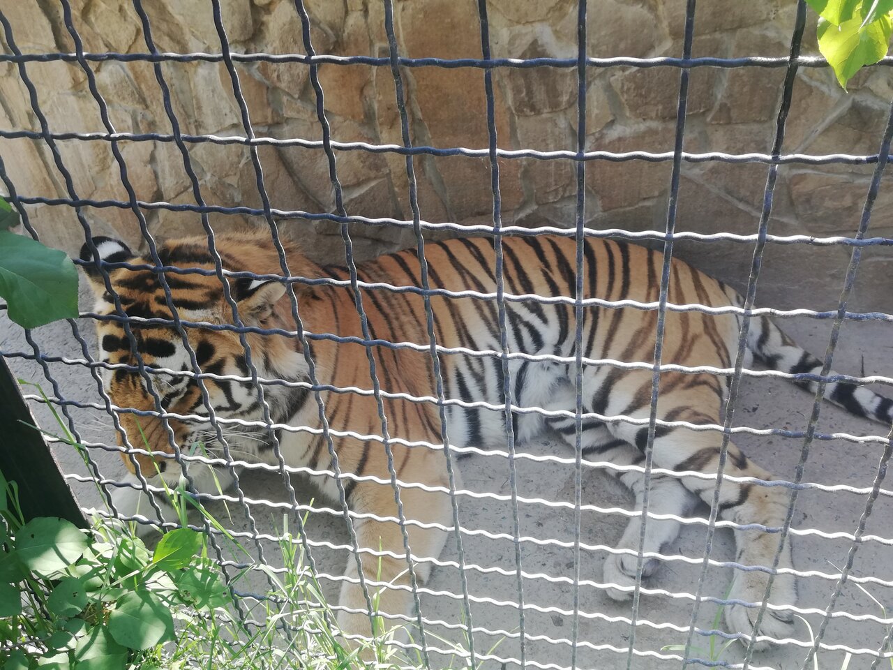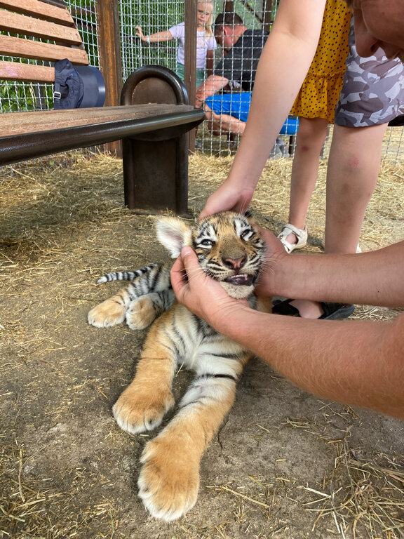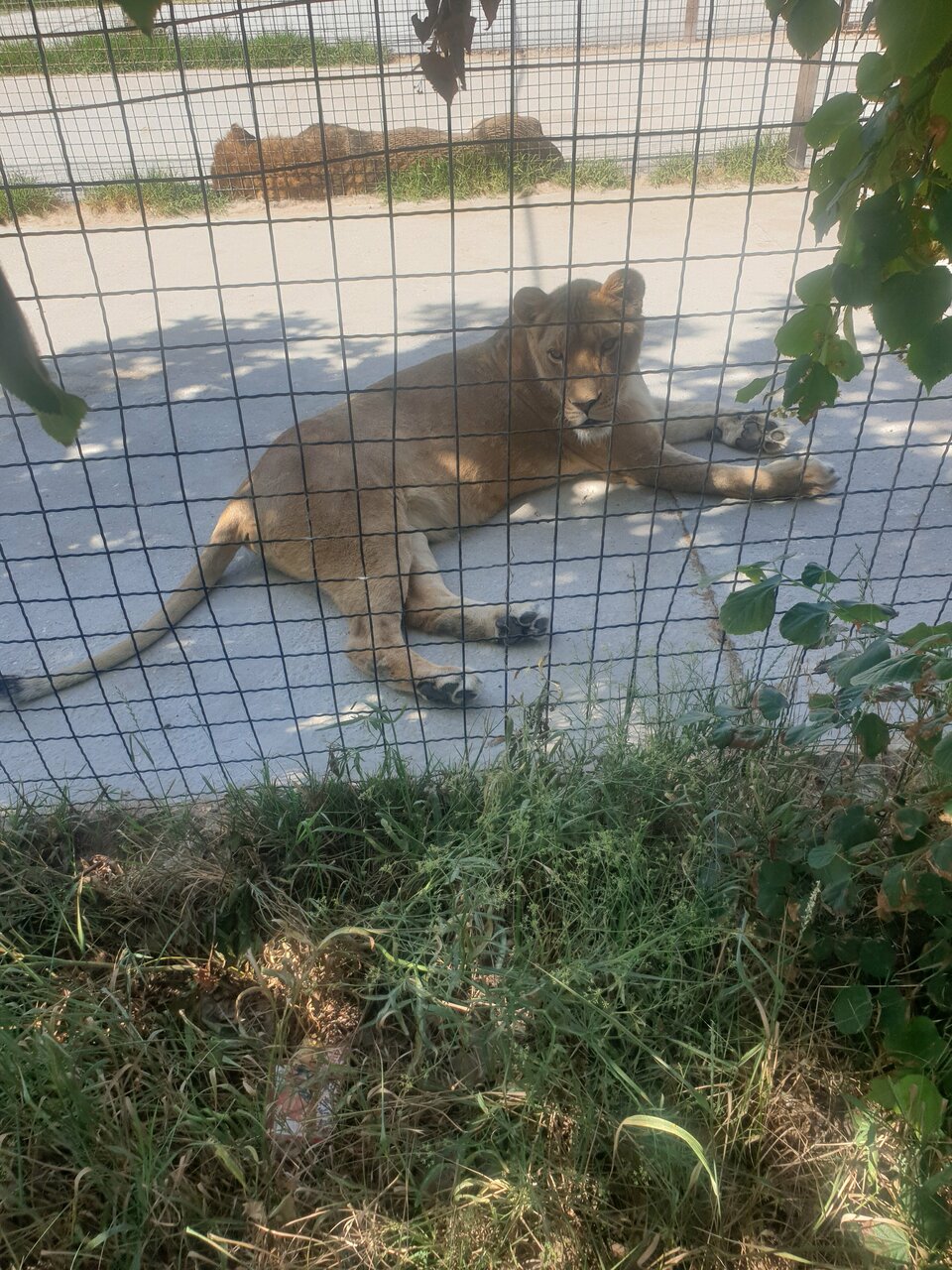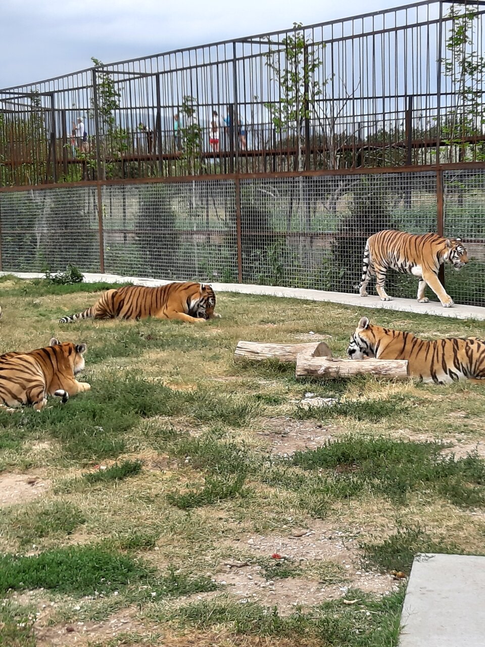 Посетили парк 27.07.2024. территория большая, зелень, ухожена частично( как по мне). Звери красавцы — сыты, ухоженные , но бедолаги изнывают в жару. Испортило впечатление один момент — это фото с малышами тигрятами, бедные. Затисканые, без минуты покоя,хотели спрятаться от людей подальше. Я понимаю,что деньги рулят, но хотелось бы обратиться к руководителю зоопарка — лимитируйте пожалуйста такое общение, жалко маленьких. Мой ребенок очень хотел быть с тигренком, мы зашли, но старались не беспокоить. Не было у них водички, налили свою, выпили.