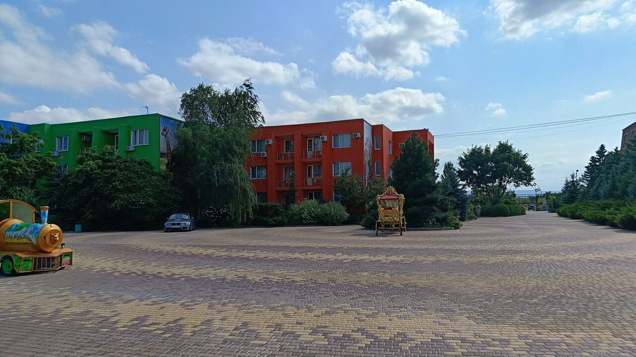- Есть аттракционы для детей, кафе, минибасы для передвижения.