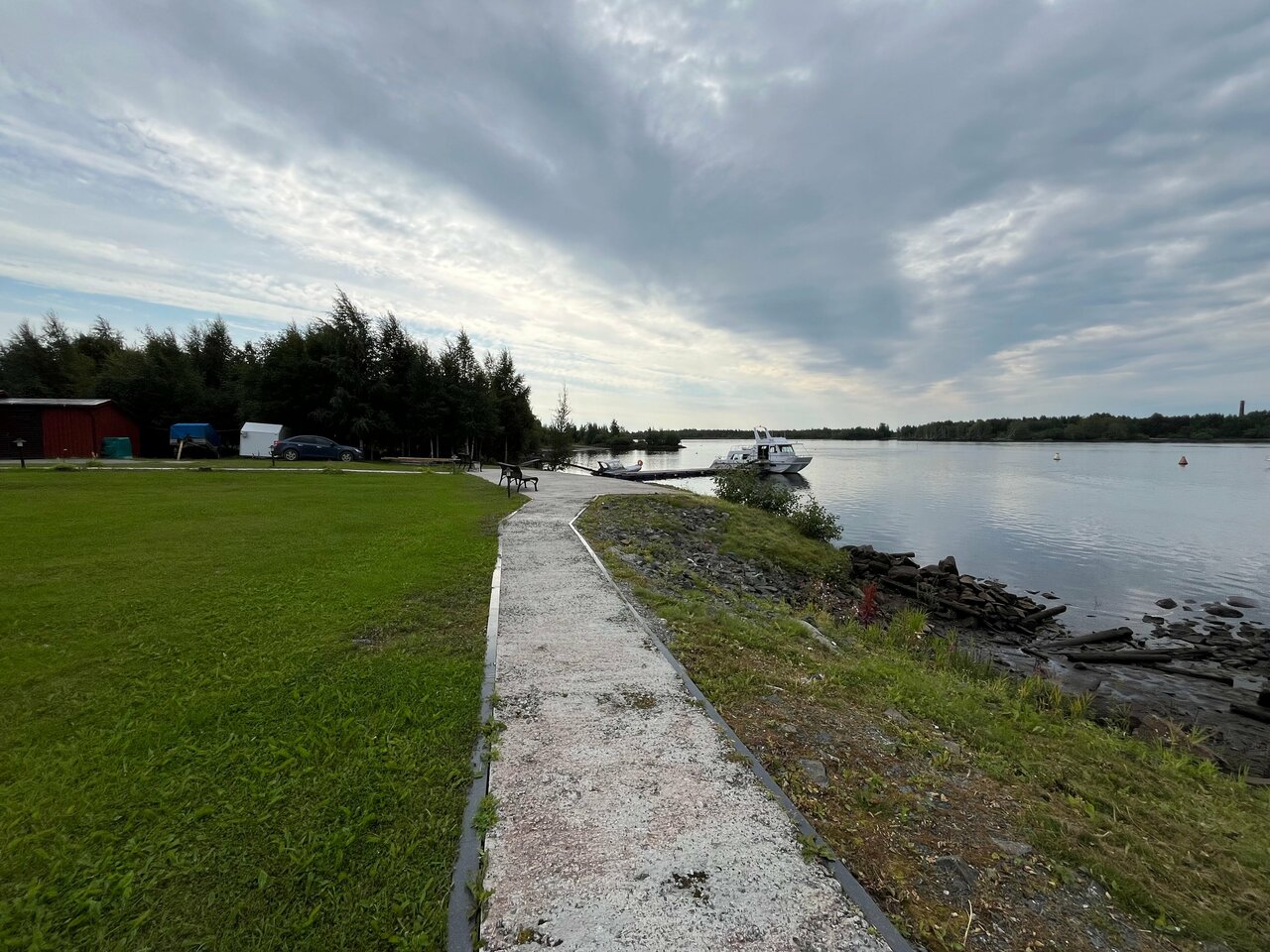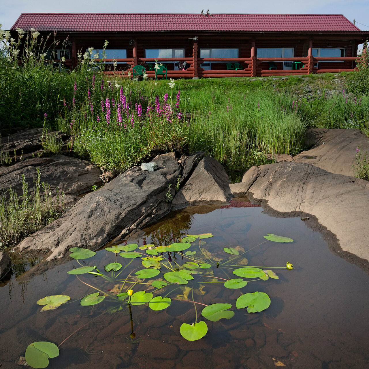 Место очаровательное, останавливаться не стали, но на территорию зашли, думали ночевать здесь или нет. Домики все новые, красивые, прям на берегу. Но жирный минус — подъездная дорога, это просто грунтовка с кучей ям и луж