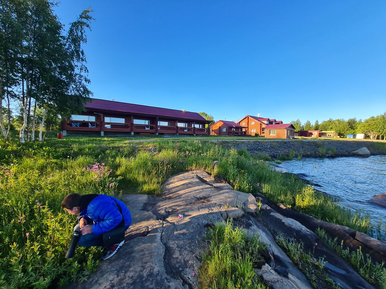 Останавливались на одну ночь в летнем домике по дороге на Соловки. Номер просторный, горячая вода в душе есть. Кухня на улице, в отдельном вагончике, оборудована всем необходимым: холодильник, чайник, две плиты (газ + электро), мойка с горячей водой, набор посуды для приготовления и еды, питьевая вода в бутыли. Кровати удобные, шторы плотные (для июля это актуально). Места для парковки рядом с домиками. Для любителей рыбалки отличное место:) В основном здании, похоже, есть ресторан — но мы не уточняли.