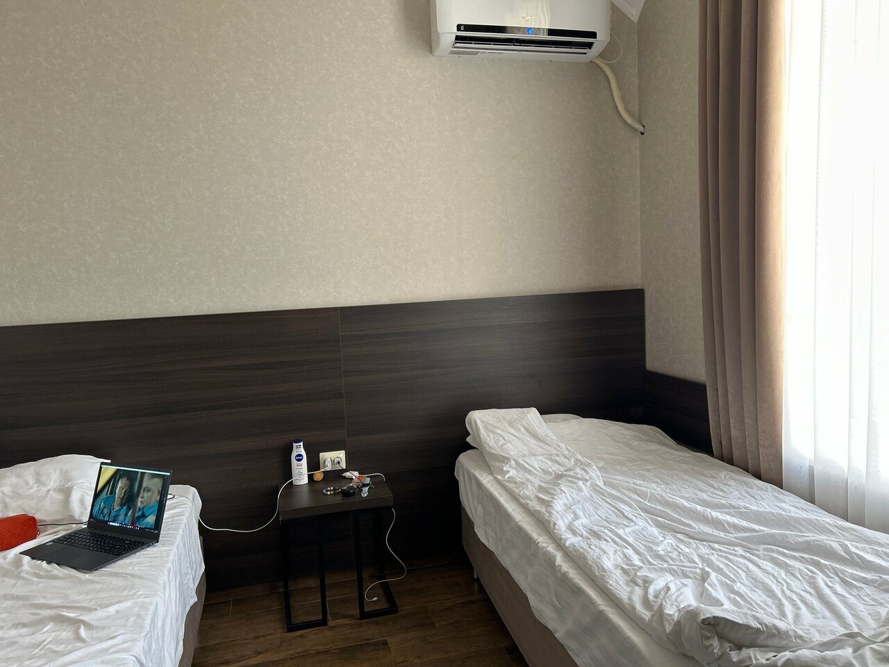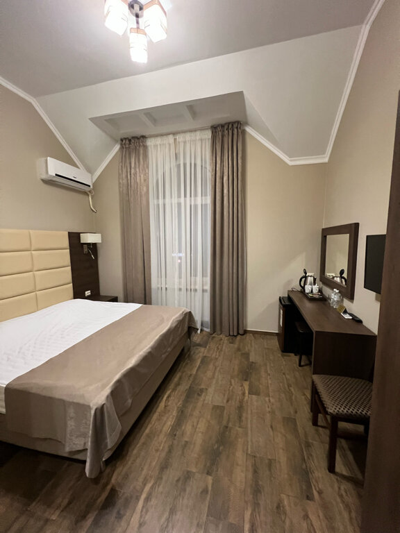 Жил в этом отеле 10 дней. Общее впечатление отличное, если можно было поставить 6 из 5 то я так и сделал бы. А теперь по факту. Плюсы: 1. Номера очень чистые, вся мебель новая, номер даже мой, самый дешёвый с кондиционером, холодильником, телевизором. Свежий ремонт. 2. Санузел большой и удобный, со встроенным феном. 3. Мыло шампунь каждый день добавляют. 4. Туалетная бумага очень мягкая (не нождачка) 5. Полотенца меняют каждый день. 6. При входе всегда можно взять бутилированную питьевую воду в любом нужном количестве и это уже входит в стоимость номера. 7. Хозяева и персонал очень доброжелательные и отзывчивые. 8. Всё продумано до мелочей. 9. Цена с учётом ухода за гостями и воды что не мало важно. Минусы: 1. Мне пришлось уехать от них, так как закончились дела в городе. Желаю успеха и процветания. Это одна из не многих гостиниц где я был, куда без сомнения хочется вернуться.