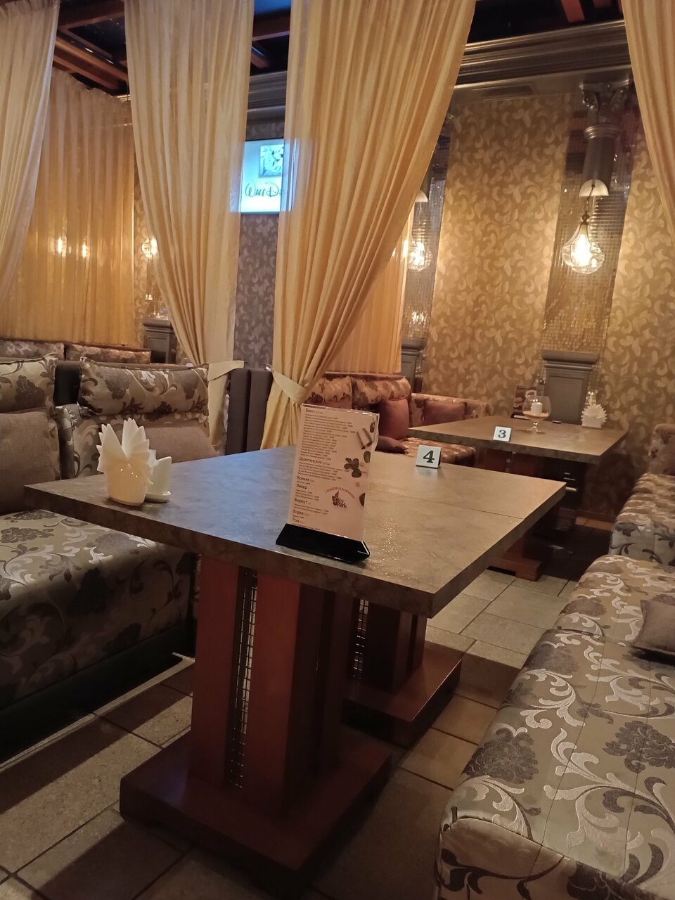 Персонал на болконе(стеклянный) не внимательные, не предложили мне вазу для цветов, пока сама уних не спрасила. Капучино ели тёплое принесли, объяснили тем что горячим его не подают. Очень странно это.