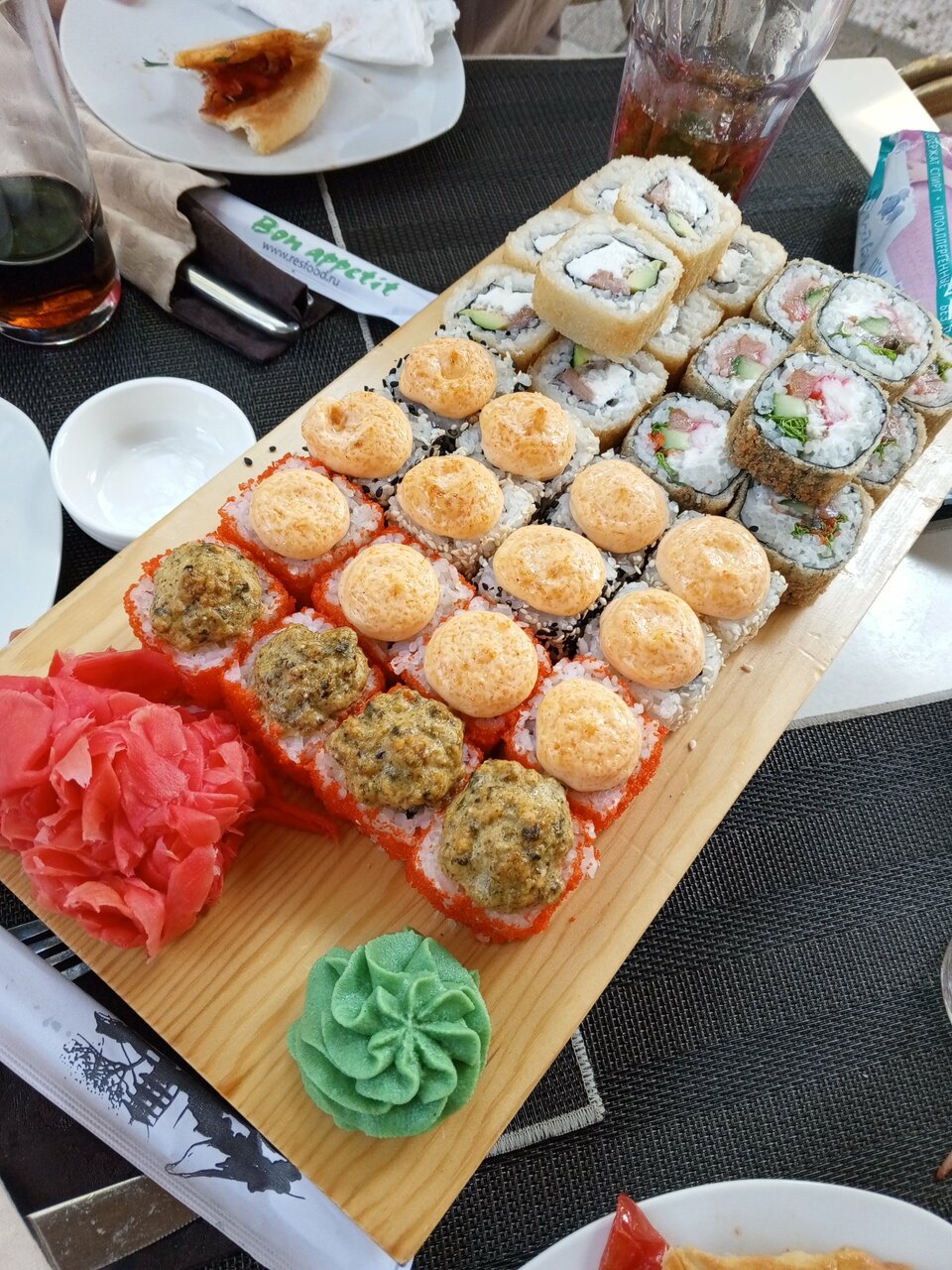Калифорния с угрем 1/2 п; Калифорния с лососем 1/2 п; Филадельфия 1/2п; Канада 1/2 п.