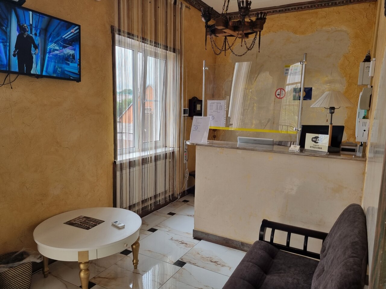 Микрогостиница. Картой оплатить невозможно. Кровать не очень удобная — твердоватая и можно прочувствовать металлокаркас. Цена несколько завышена для данного города. Окно маленькое и высокое.