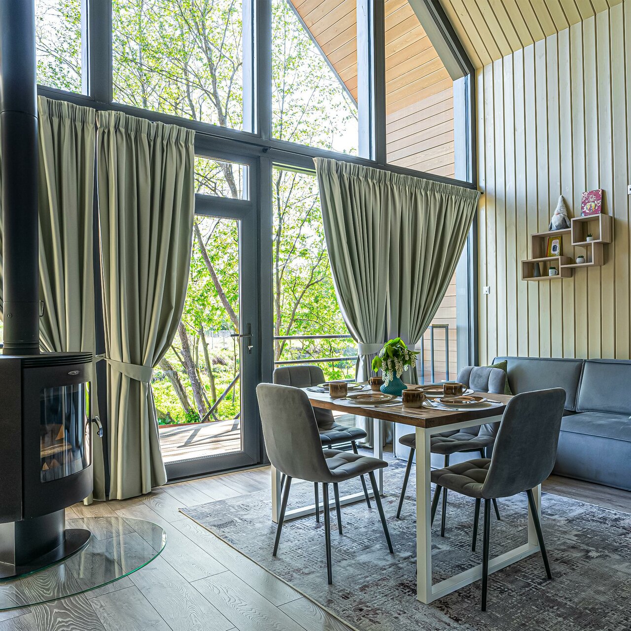Отличное место, с красивой природой в окружении домиков. Домики с камином, где можно провести романтичный вечер. Есть банька на дровах, купель. Всё чисто, новенькие домики со своей мангальной зоной. Всё замечательно для семейного отдыха и релакса от городской суеты.