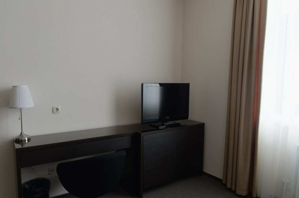 Номер очень маленький, это не минус, просто для информации. Был в морозы и в номере было очень холодно. Нет одноразовых тапочек. С окна сильно дует. Мебель пошарпана.