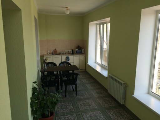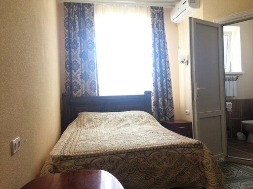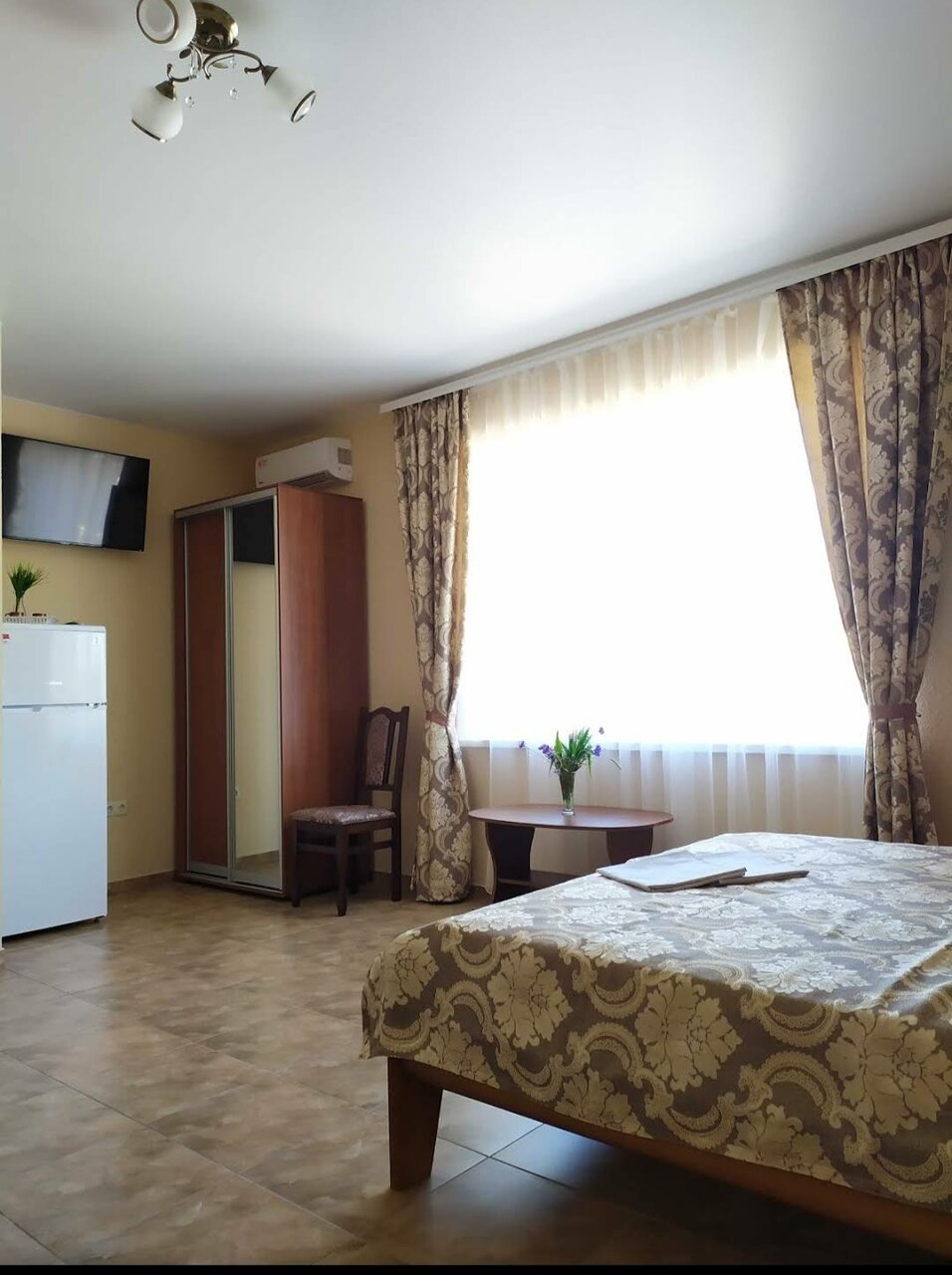 Все хорошо. Чисто. Номера большие. Ехали проездом. Останавливались на одну ночь. Брали стандарт. Большая кровать. Диван, холодильник. Туалет душ все в номере. На крыше терраса со столиками и лавками. Вечером посидеть одно удовольствие. Приветливая администрация. До моря 7 мин пешком. Рекомендую