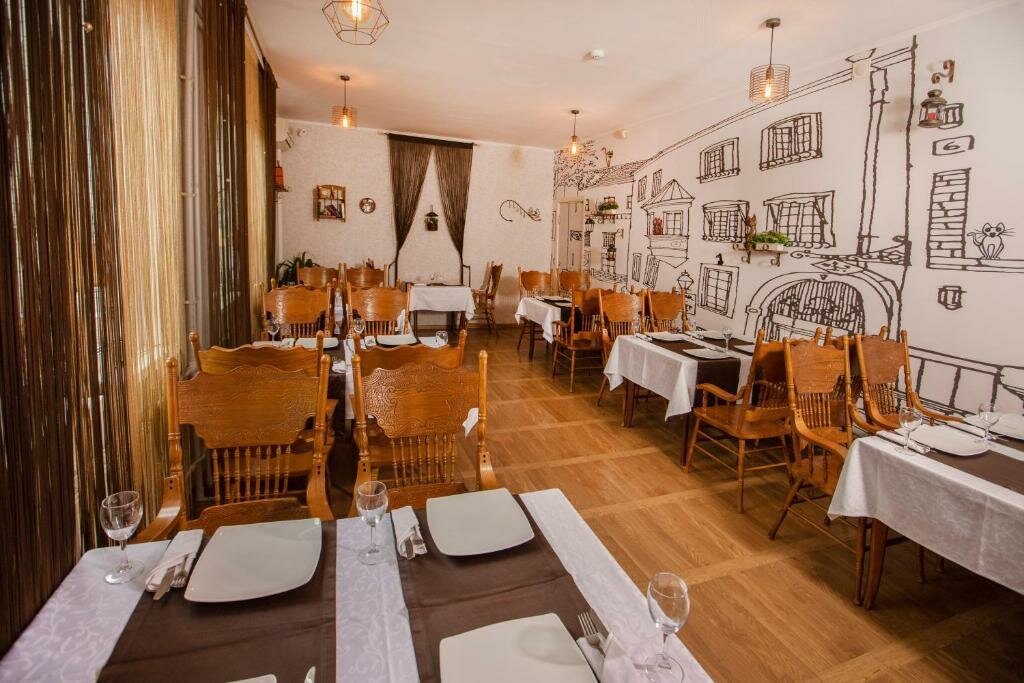При гостинице есть ресторан Фабрикант. Комплексные обеды очень вкусные.