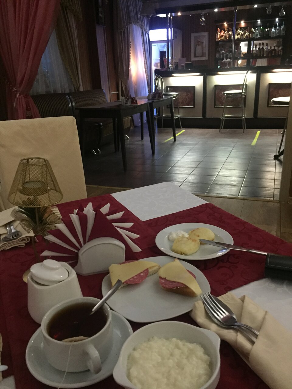 Не хуже и не лучше остальных провинциальных гостиниц. Мне не повезло с отоплением, его только включили и номер не успел прогреться. Но дали обогреватель. 3 из за холода. Завтрак яичница, бутер, чай, йогурт.