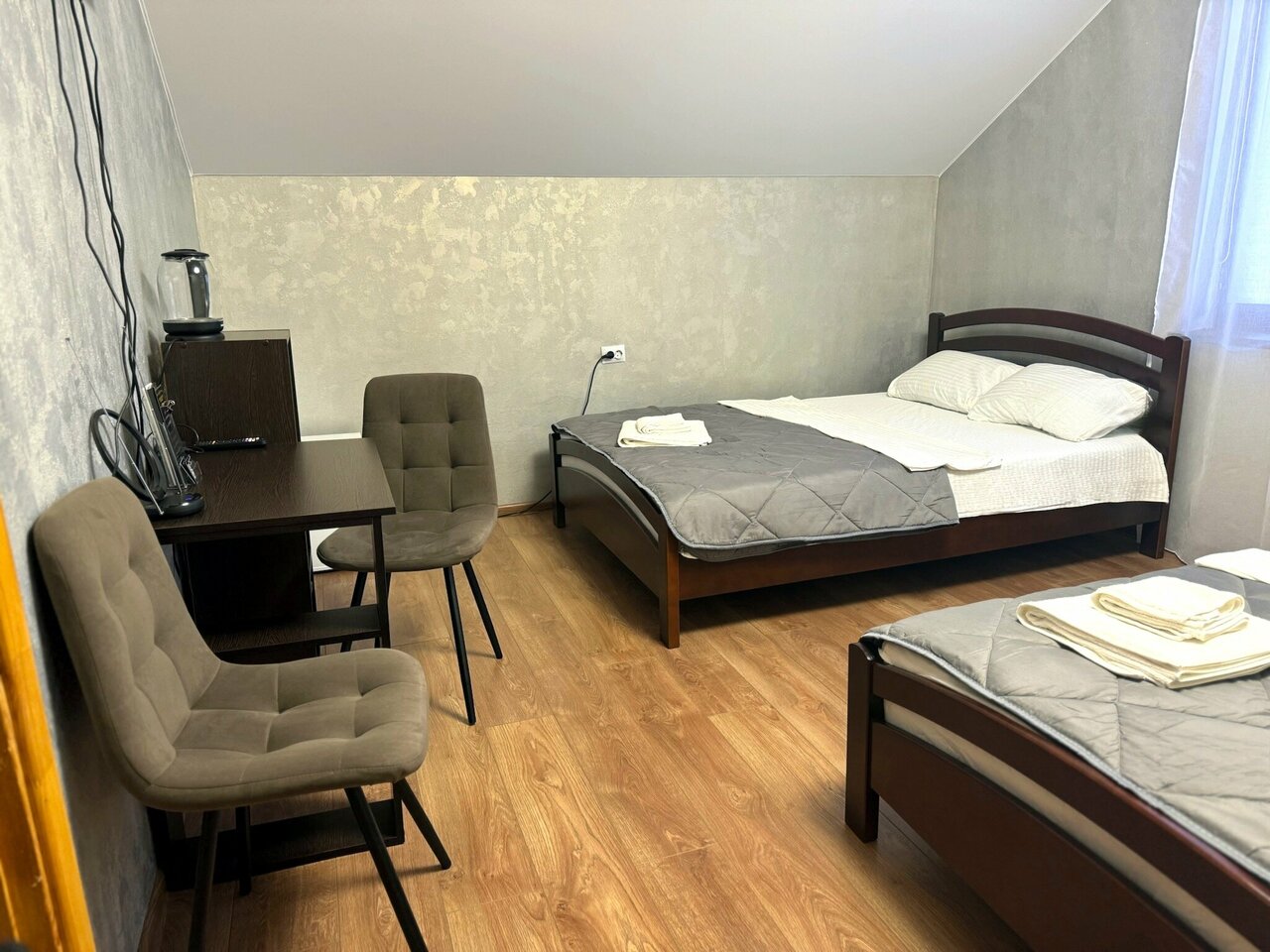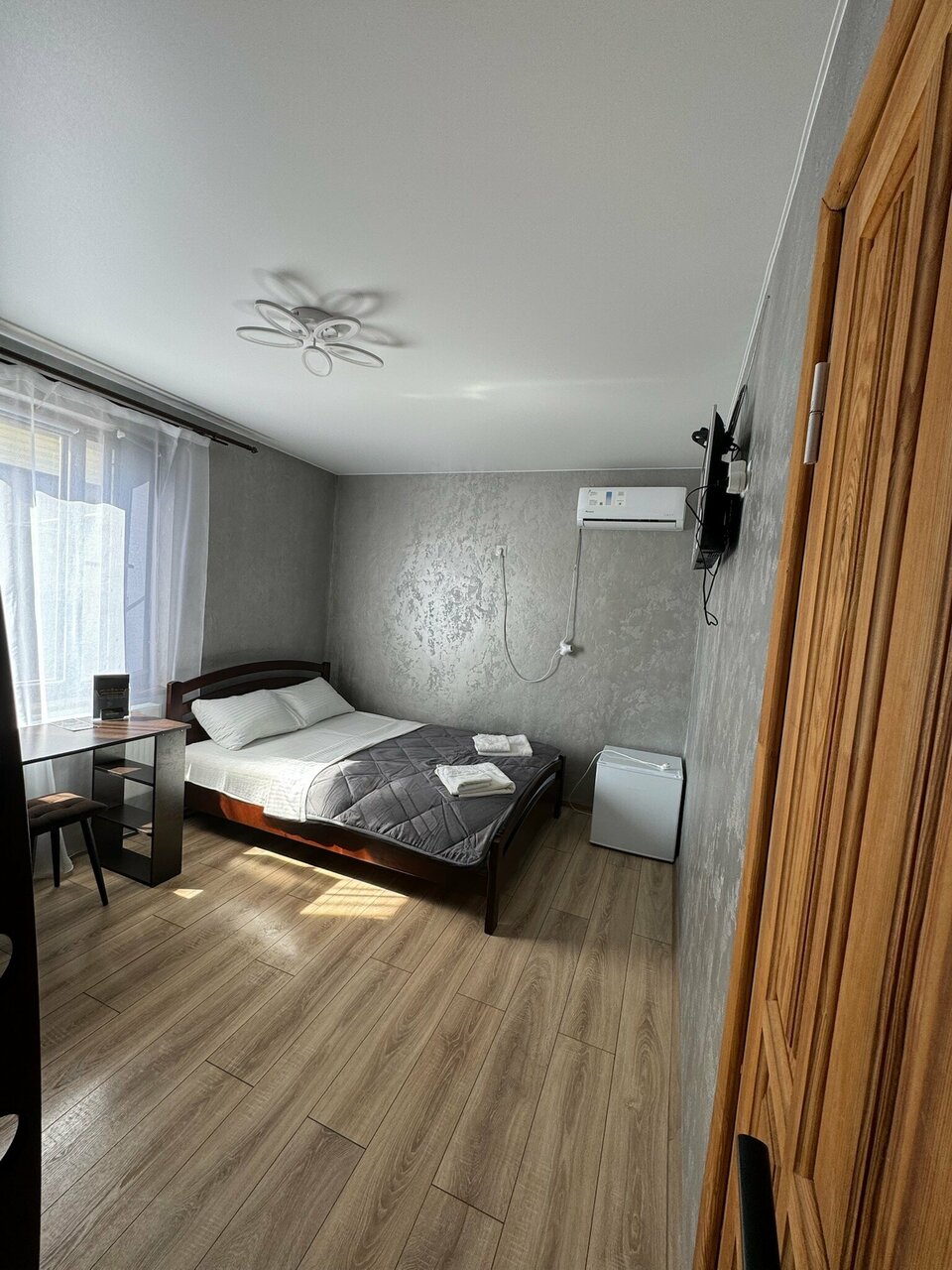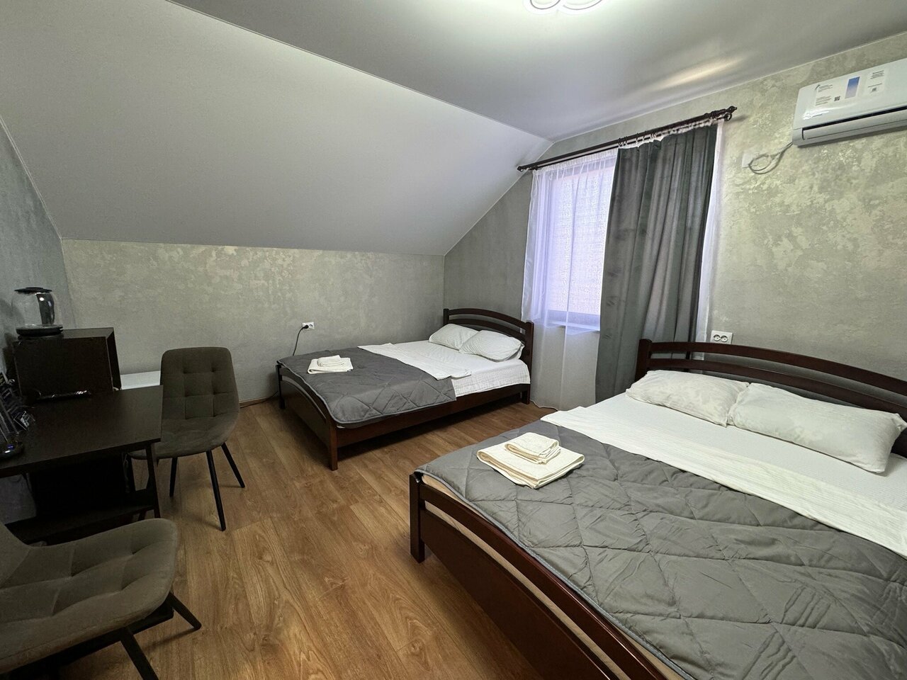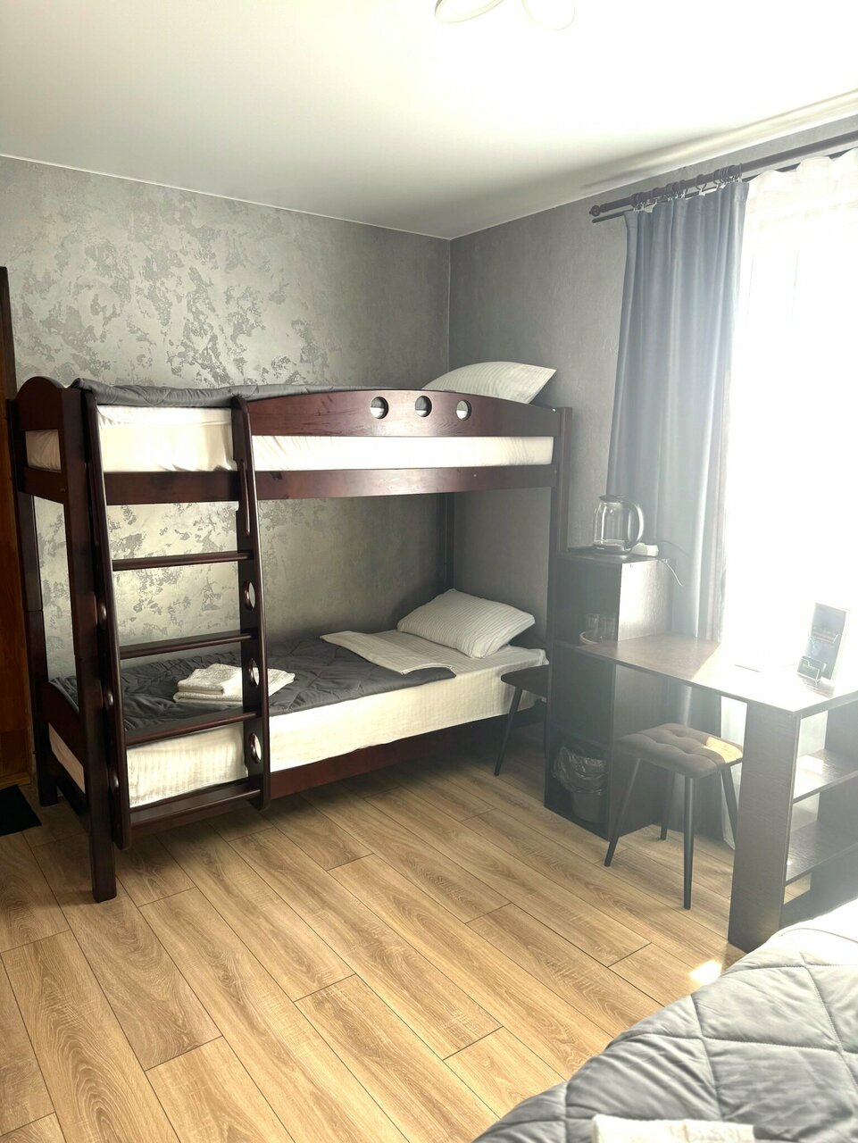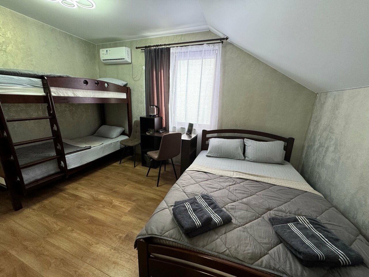Вместимость до 4-х человек, одна двуспальная кровать, одна двухъярусная кровать. Ванная комната в номере, кондиционер, холодильник, чайник, телевизор , смарт ТВ, фен, комплект полотенец для каждого гостя, чайная группа. Цена указана за 1 гостя, по...