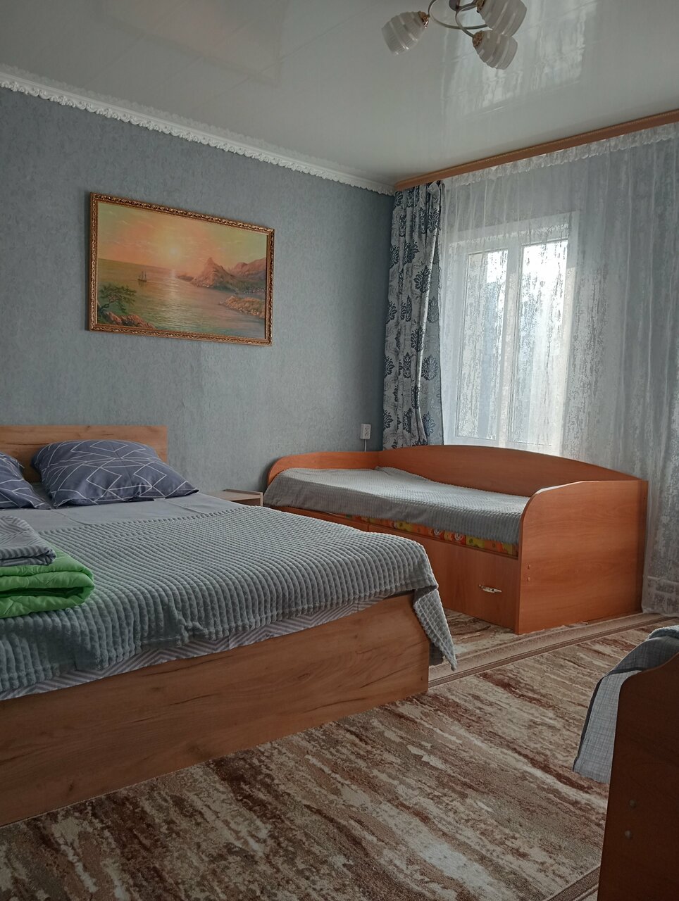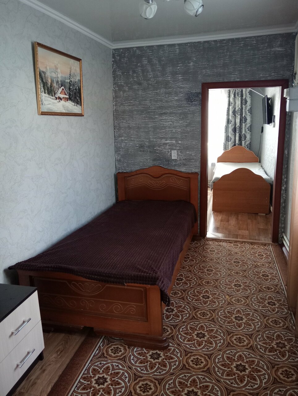 Две комнаты у каждой отдельный вход, с общим двориком и кухней.Мебель: односпальная или две двуспальных кровати, диван,два шкафаКомнат: 2Кухня: индивидуальна у номераСанузел: индивидуальный у номера