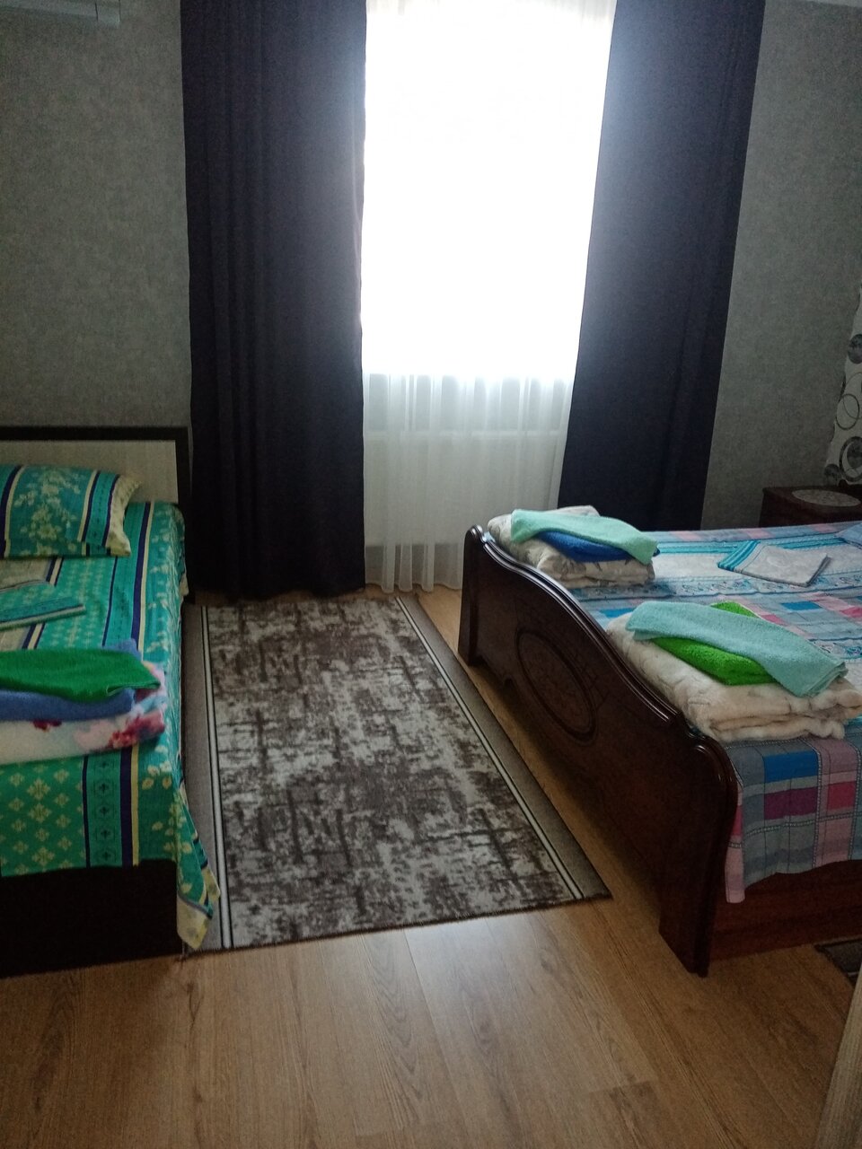 Останавливались по дороге с моря домой. Позвонили часа за три, договорились и нас приняли. Месторасположение удобное и тихое, хозяйка с хозяином очень приветливые и общительные. Есть небольшая парковка на территории. Остались в восторге от качества и чистоты жилья. Такое ощущение, что строители ушли только что — все блестит, новый ремонт. Нас заселили в двухкомнатный шестиместный номер с кухней, туалетом и душем. Очень комфортное проживание, все удобства есть. Территория приятная и ухоженная. Да и за забором все очень чисто и аккуратно. Могу смело рекомендовать.