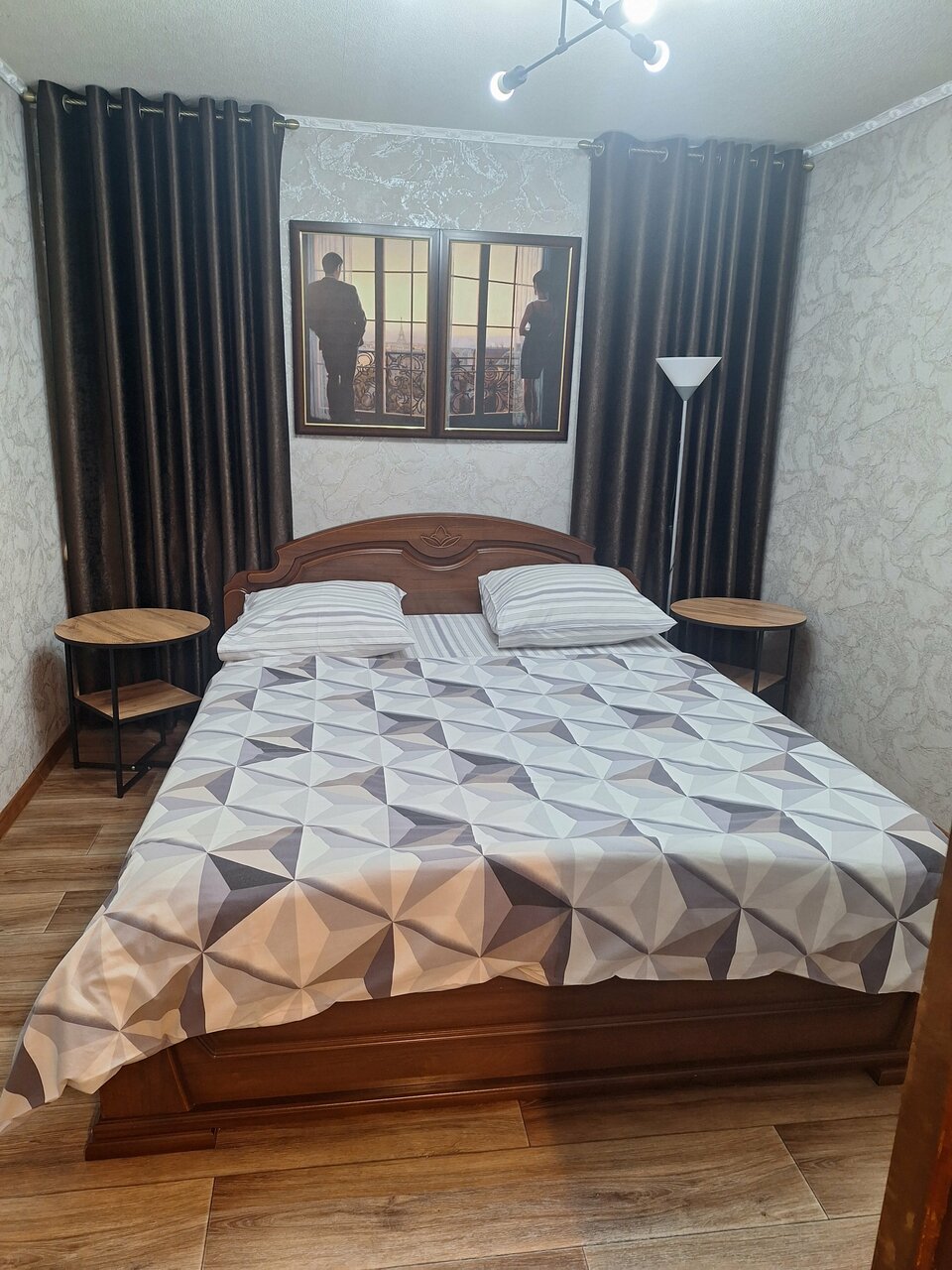 Уютно, чисто, есть все необходимое для проживания. Чистое бельё. Есть посуда, микроволновка, холодильник, гладильная доска.