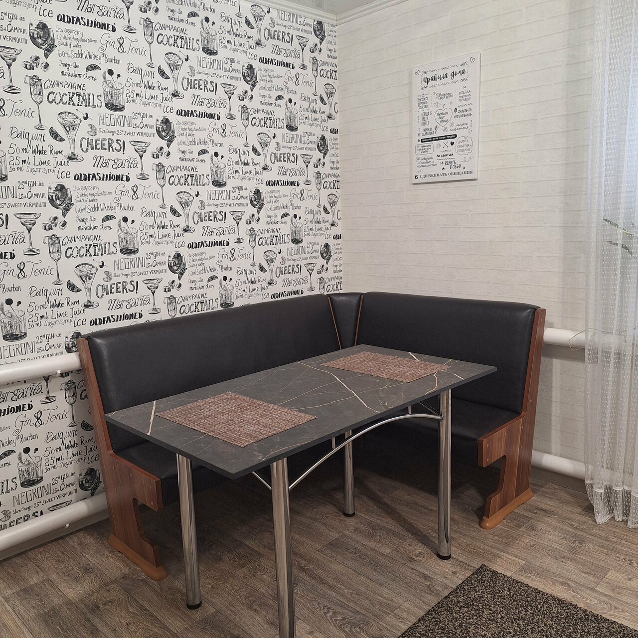 Чисто, приятно и по домашнему уютно, а также есть кухня с газовой плитой, микроволновка, холодильник столовые приборы все которые должны быть на кухне, и стиральная машинка с телевизором, парковочное место. Всё идеально!