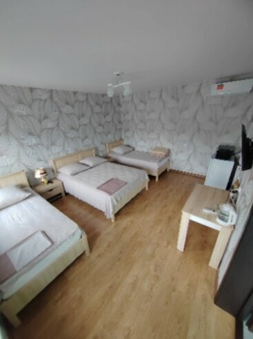 Семейный номер с двухспальной кроватью. Вмещает гостей: 4 гостей Дополнительных мест: 1 местоКоличество кроватей: — 1 Односпальная кровать — 1 Двуспальная кроватьУдобства в номере: КондиционерТелевизорЗвукоизоляцияБалконВид из окнаДуш