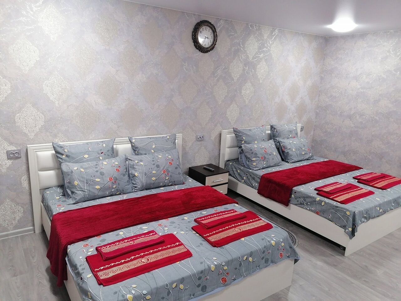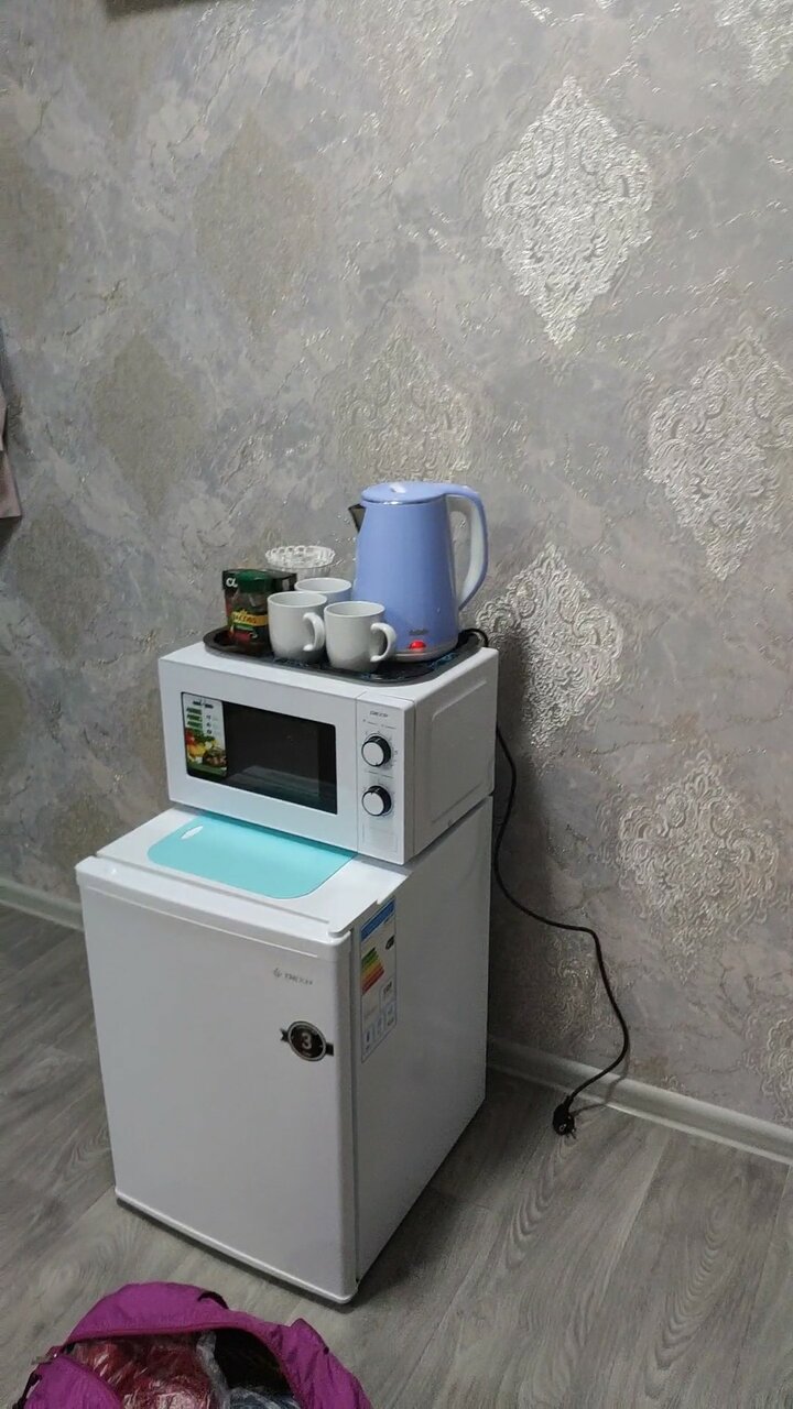 Новый ремонт, две двухспальные кровати, чайник, микроволновка, кондей, холодильник, все есть. Из пожеланий только пару тарелок добавить. Тихо и комфортно.