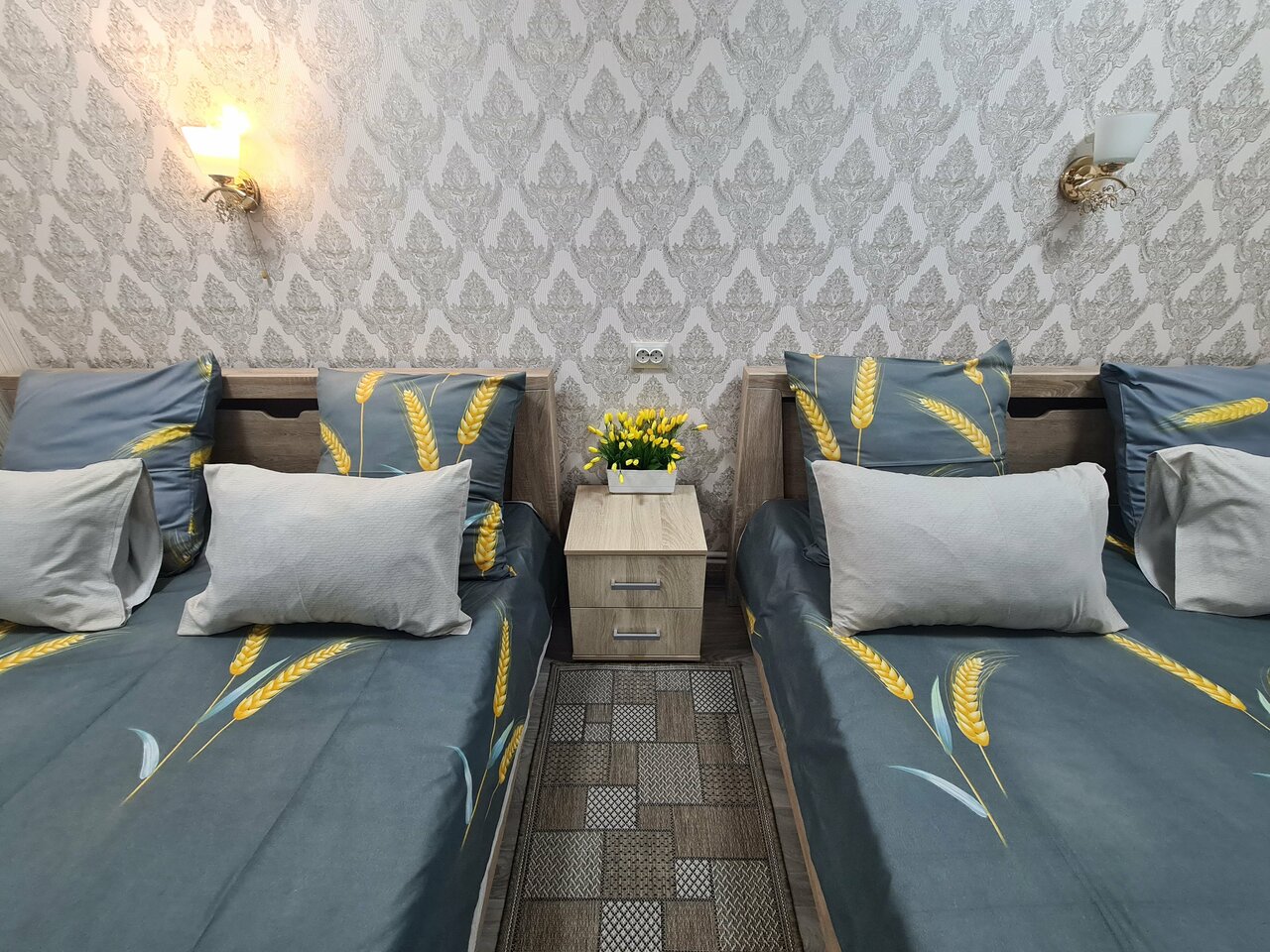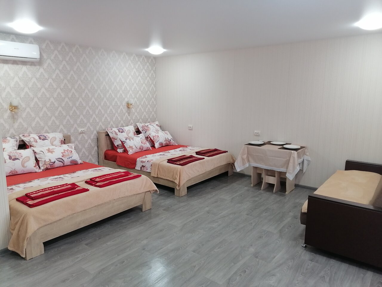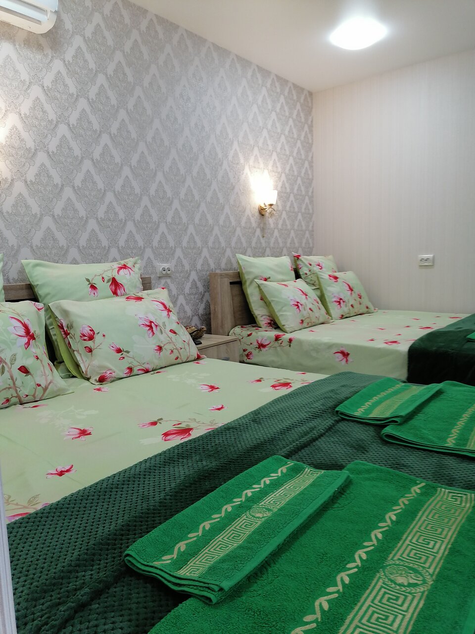 Отличное место для отдыха. Следуя из Беларуси в Крым на отдых и обратно, остановились здесь для ночёвки. Самое главное что номер ОЧЕНЬ чистый и с двумя большими комфортными кроватями, выспаться можно спокойно. Есть всё необходимое: кондиционер, холодильник, микроволновая печь, чайник, телевизор. Чай, кофе,конфетки,печенье,каша быстрого приготовления как приятный бонус. Хозяйка очень приятная, вежливая. Хорошее место для отдыха.