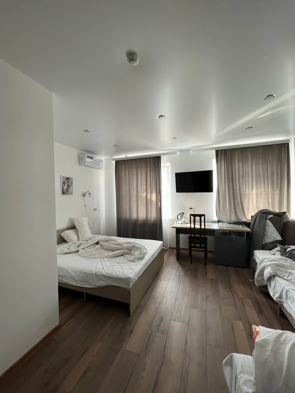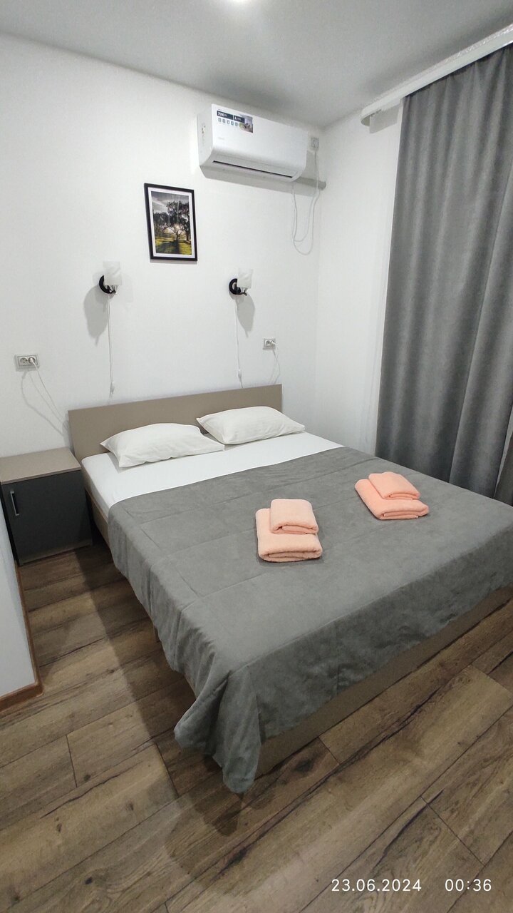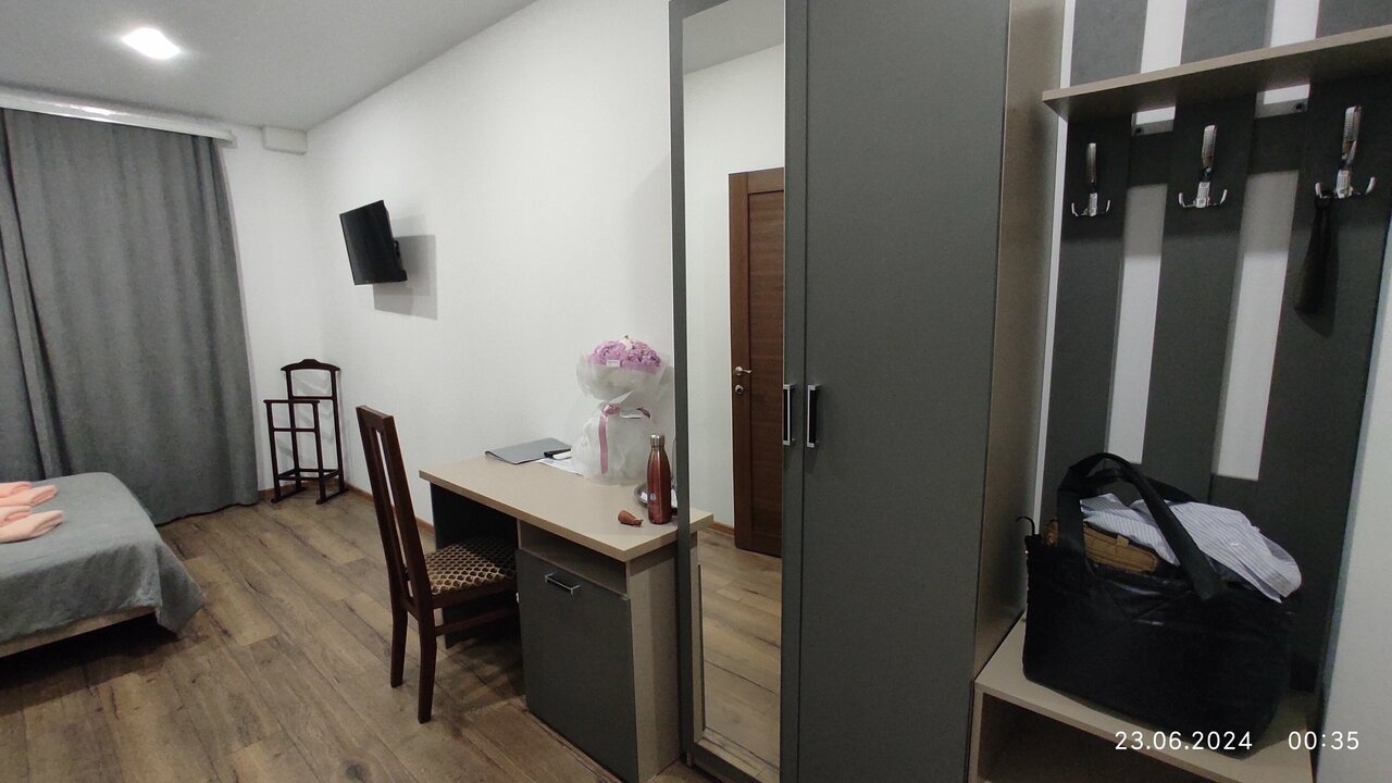 Номер отличный, всем советую, есть чайник, кондиционер, телевизор, холодильник, душ и все комфортности. Вся мебель новая, при входе встречает добрая девушка.