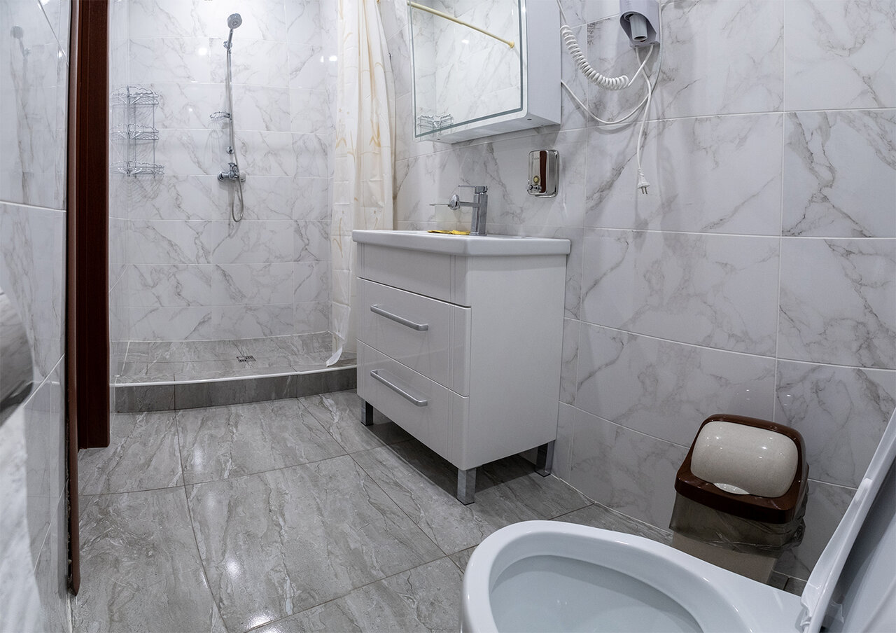 - Чистый санузел с качественной сантехникой.