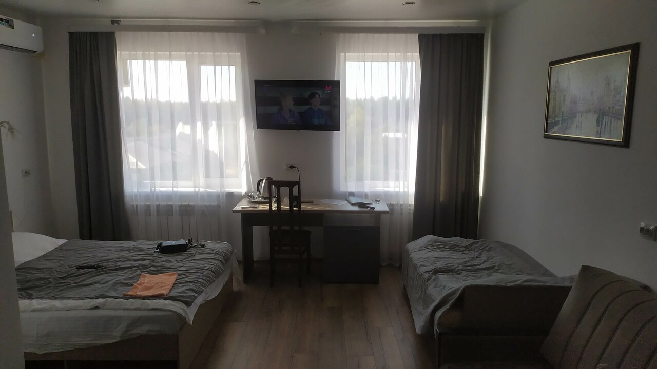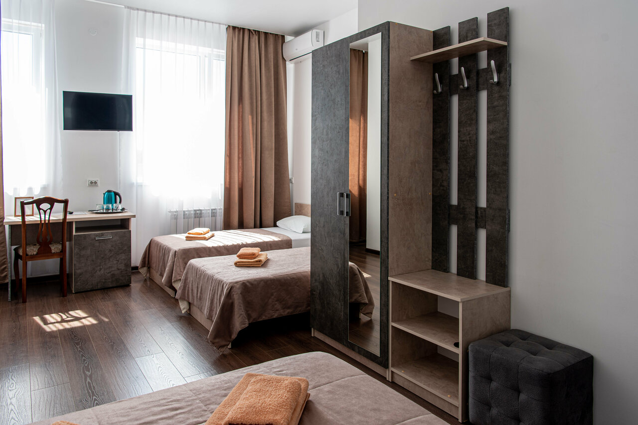 Отель замечательный. Останавливались в июне 2024г два раза по дороге к морю и на обратном пути в трехместном номере. Для нас с мужем двуспальная кровать и отдельная для сына. Все необходимое есть, чтобы комфортно отдохнуть. Хочу отметить чистоту как в самом отеле, так и в номерах, и в санузле. Есть кафе/столовая на 1 этаже: кормят вкусно, разнообразное меню и часы работы с 6:00 до 22:00. Расположение такого отеля рядом с трассой М4 делает его привлекательным для путешественников.