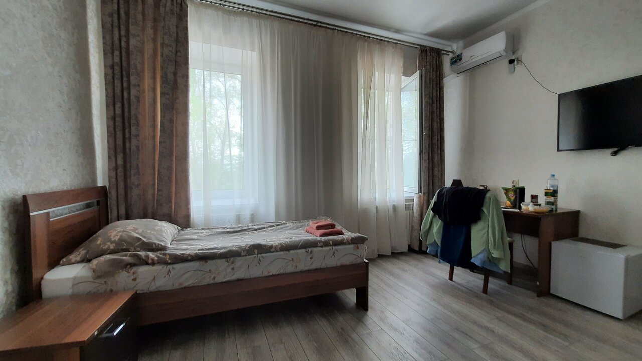 Номер Делюкс просторный, чистый. С кондиционером и сетками на окнах. Матрас хороший.