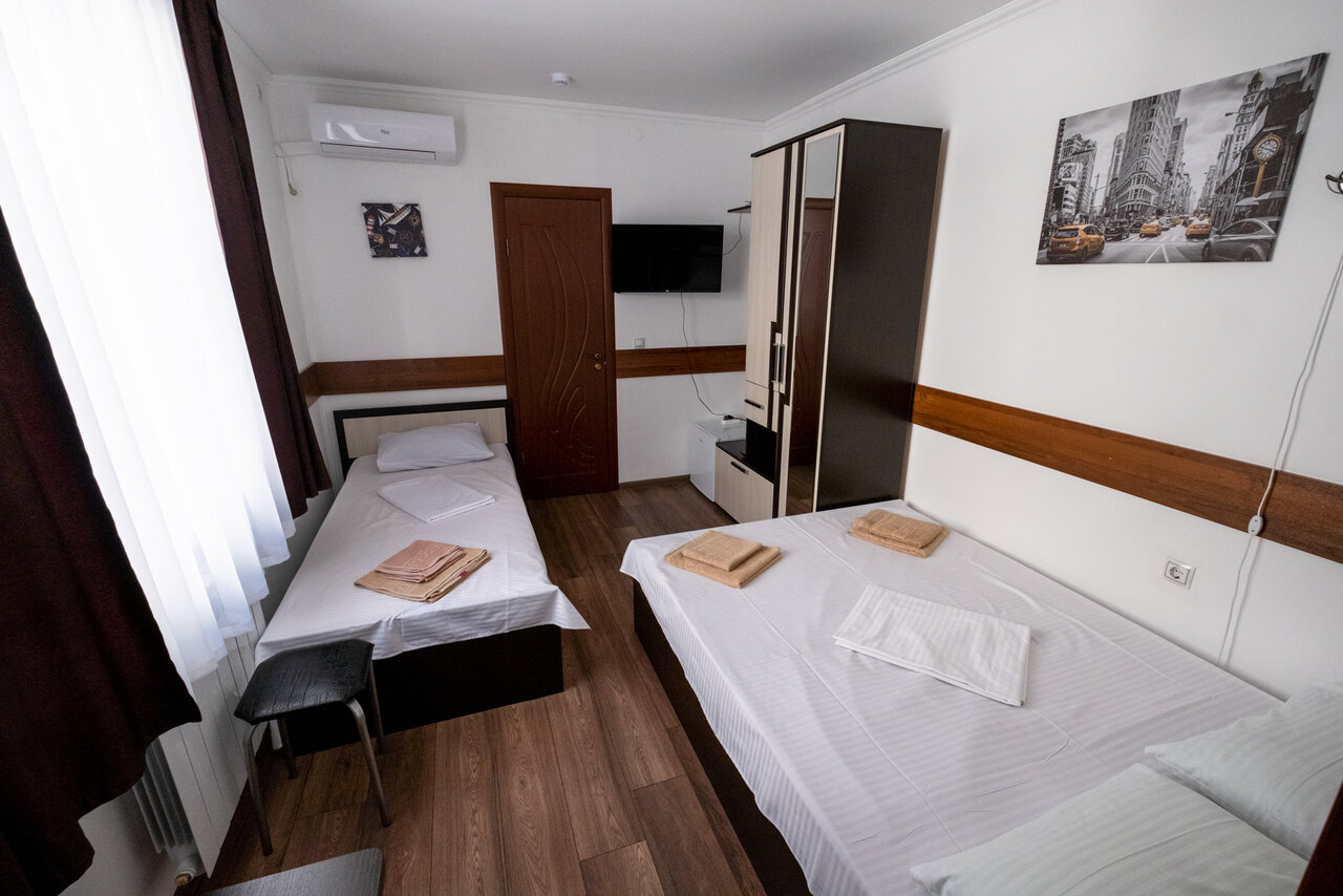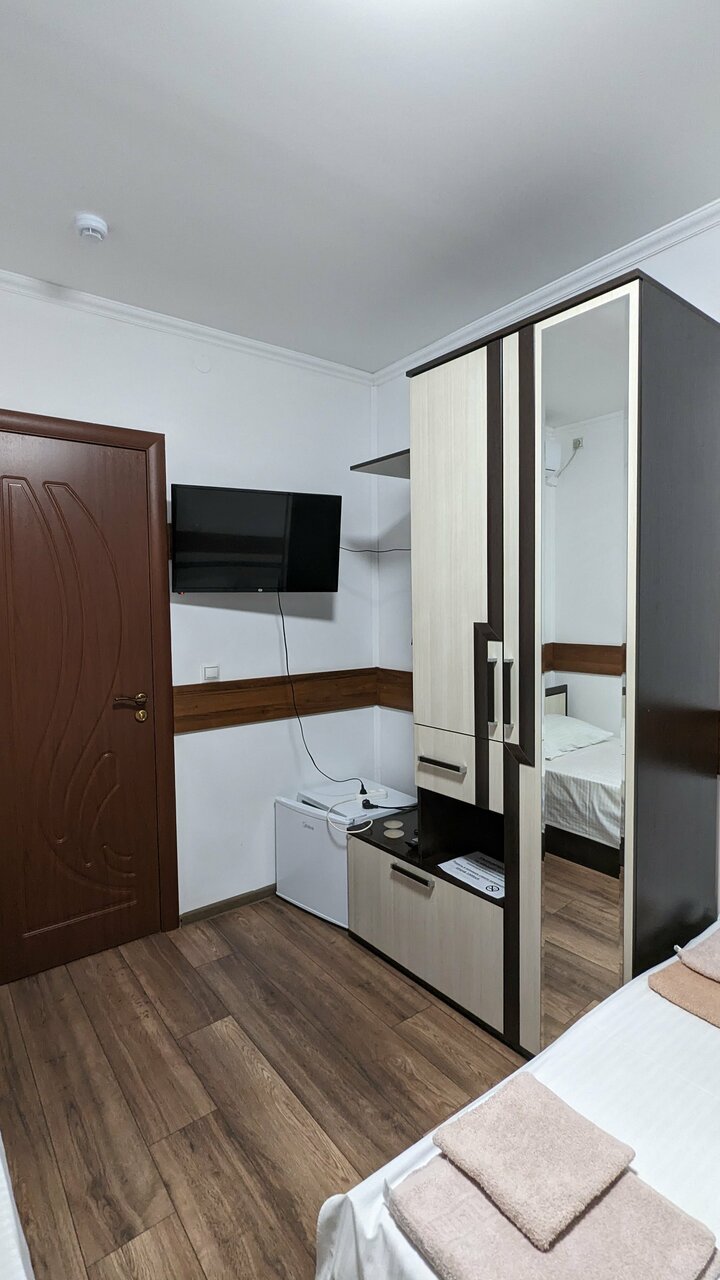 Отличная гостиница. Единственная, где нашёлся ночлег после дальней дороги с моря троим взрослым с собакой. Цена смешная — 3000 рублей номер и 300 рублей доплата за собаку. Чистое бельё и полотенца, всё стирают, есть одеяла, телевизор, кондиционер. На этаже кипяток, холодильник, микроволновка. В душе зубной набор и мыло. Парковка. Администратор Анна ждала нас, не ложилась спать, приветливо встретила, всё рассказала, спасибо ей. Я пару раз звонила по дороге, говорила, что мы едем. В номере тихо, мы прекрасно выспались и продолжили путешествие. Утром мило поболтали с горничной. Единственный минус — я не смогла закрыть ключом туалет, который был отдельно от нашего номера, и утром жильцы других номеров его посещали. В целом очень неплохая гостиница за свои деньги. По дороге ехали, читали отзывы, смеялись и приняли решение, что нам именно в это место и нужно)))