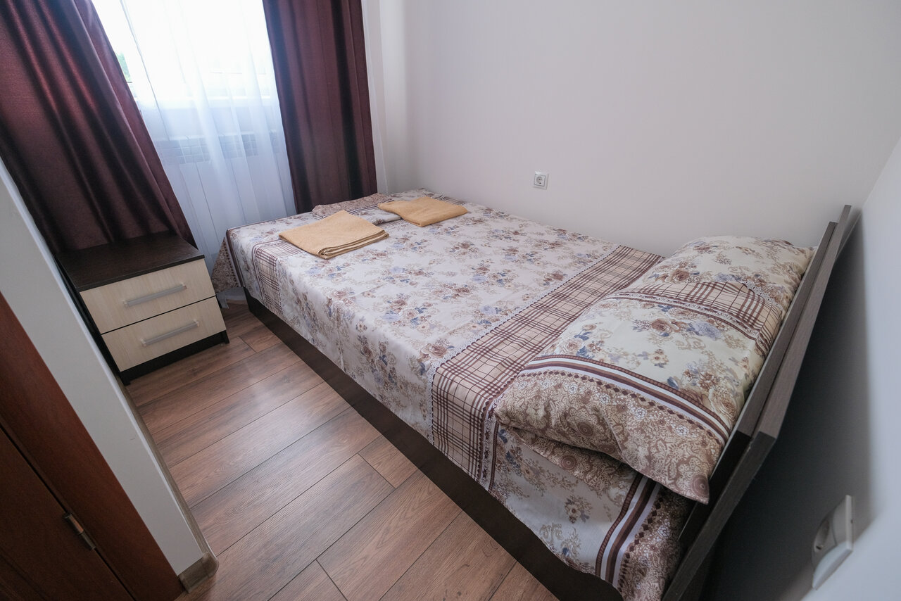 Наверное, все отзывы из основного здания. Там да, вполне прилично. При бронировании лучше уточнять куда вас заселят. Нас заселили в соседнее здание. Мы впервые не выспались от слова совсем. Очень холодно, на полу офисная плитка. Пол ледяной. Босиком ходить детям нереально. Попросила тапочки — тапочки платно. Впервые с таким столкнулась. Слышимость сильная — соседский кашель давал о себе знать. Такое ощущение, что заехали поспать в офис на работу ♀️ Реально офисное здание, просто завезли кровати и встроили душ. Всю ночь укрывала ребенка кофтами, т к одно одеяло на двоих детей это ужасно неудобно. Нас 4 человека, 4 подушки и всего 2 одеяла? А чтобы попросить дополнительно — нужно сходить ночью, когда каждая минута на счету для сна, в соседнее здание к администратору. И не факт, что это не за доп плату, как тапочки ))