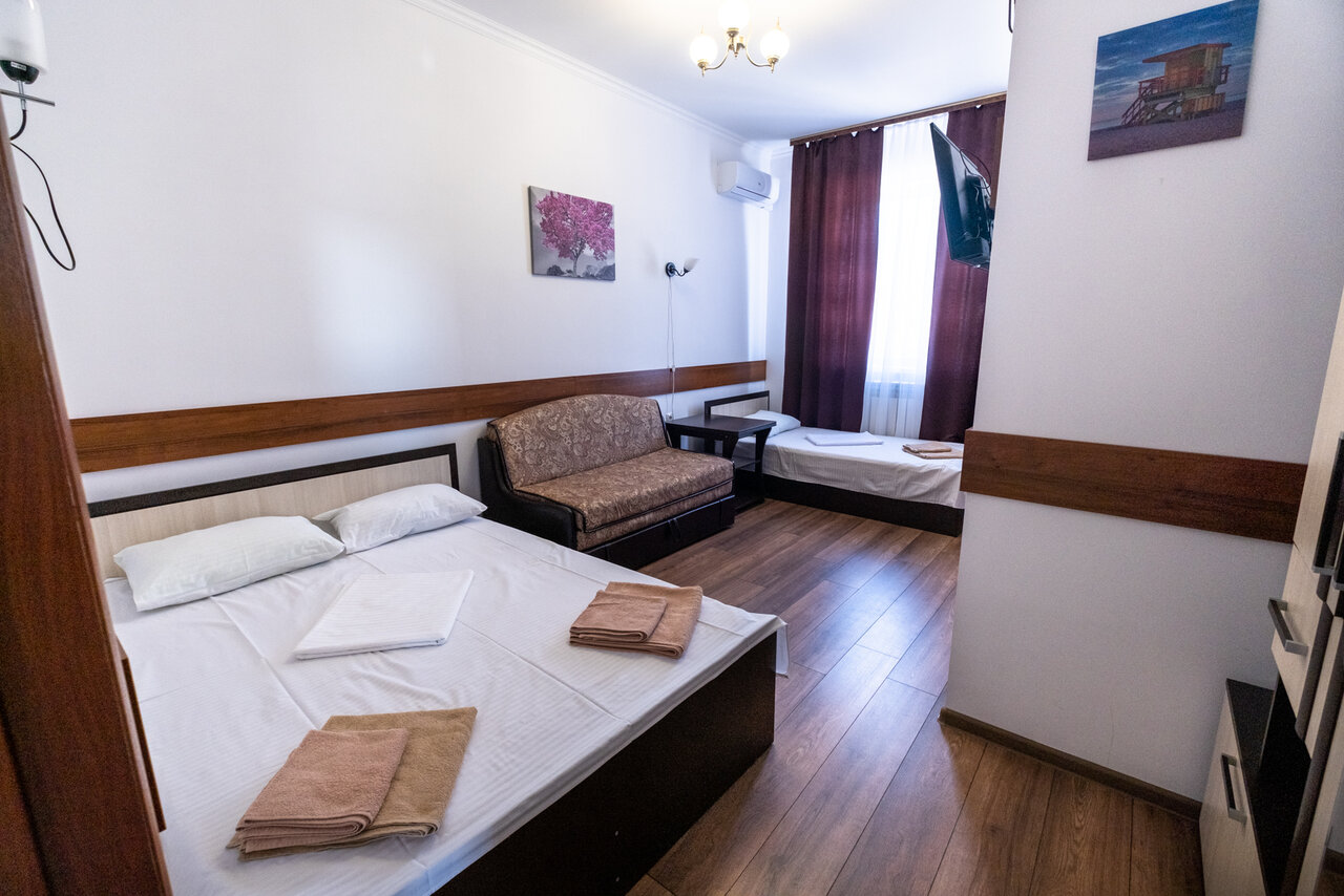 Останавливались по пути в Анапу и обратно. Отличное место для ночлега, что очень важно — принимают с домашними животными. В номере чисто, очень удобная постель, есть санузел, холодильник, кондиционер. На этаже можно чай себе сделать, кафе в шаговой доступности. В ванной шампуни, щетки, ватные диски и палочки. Очень удобно, спасибо!