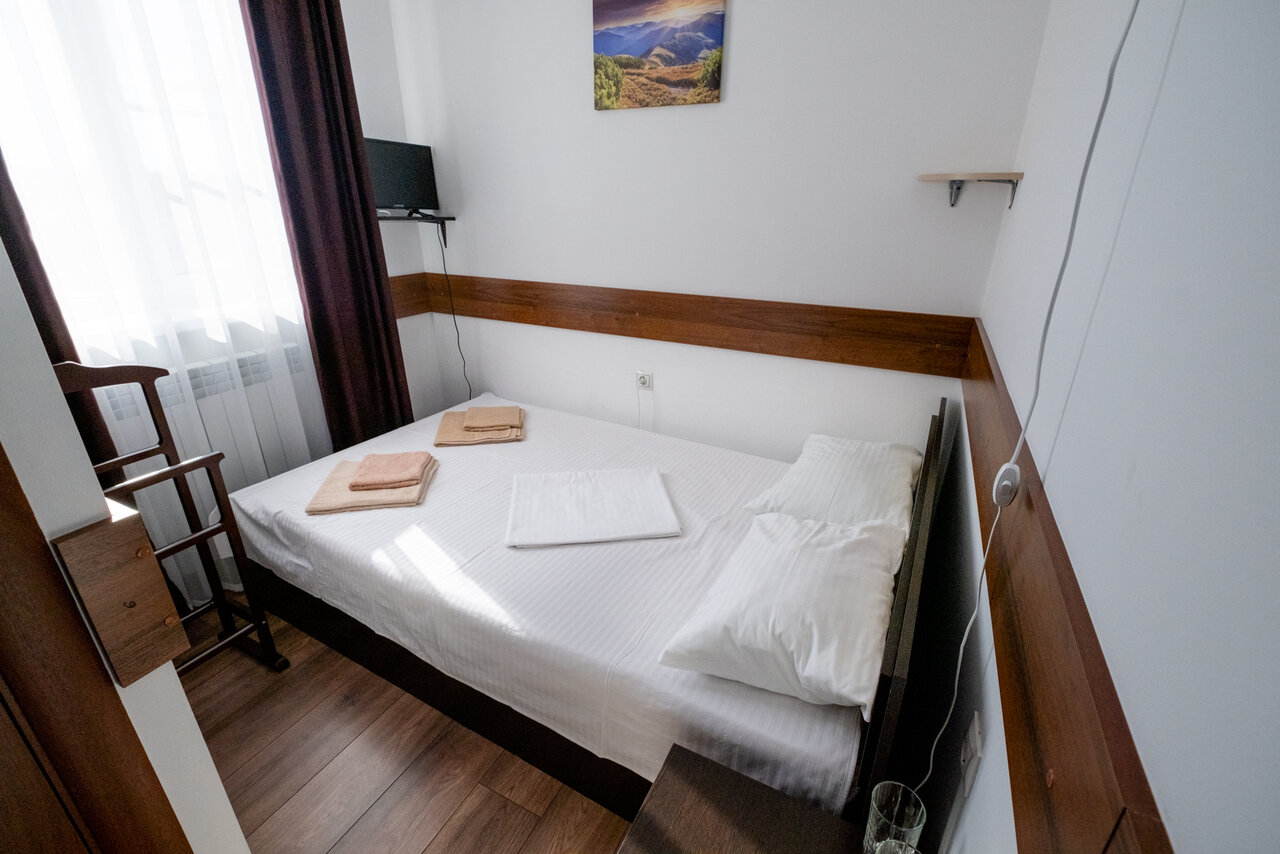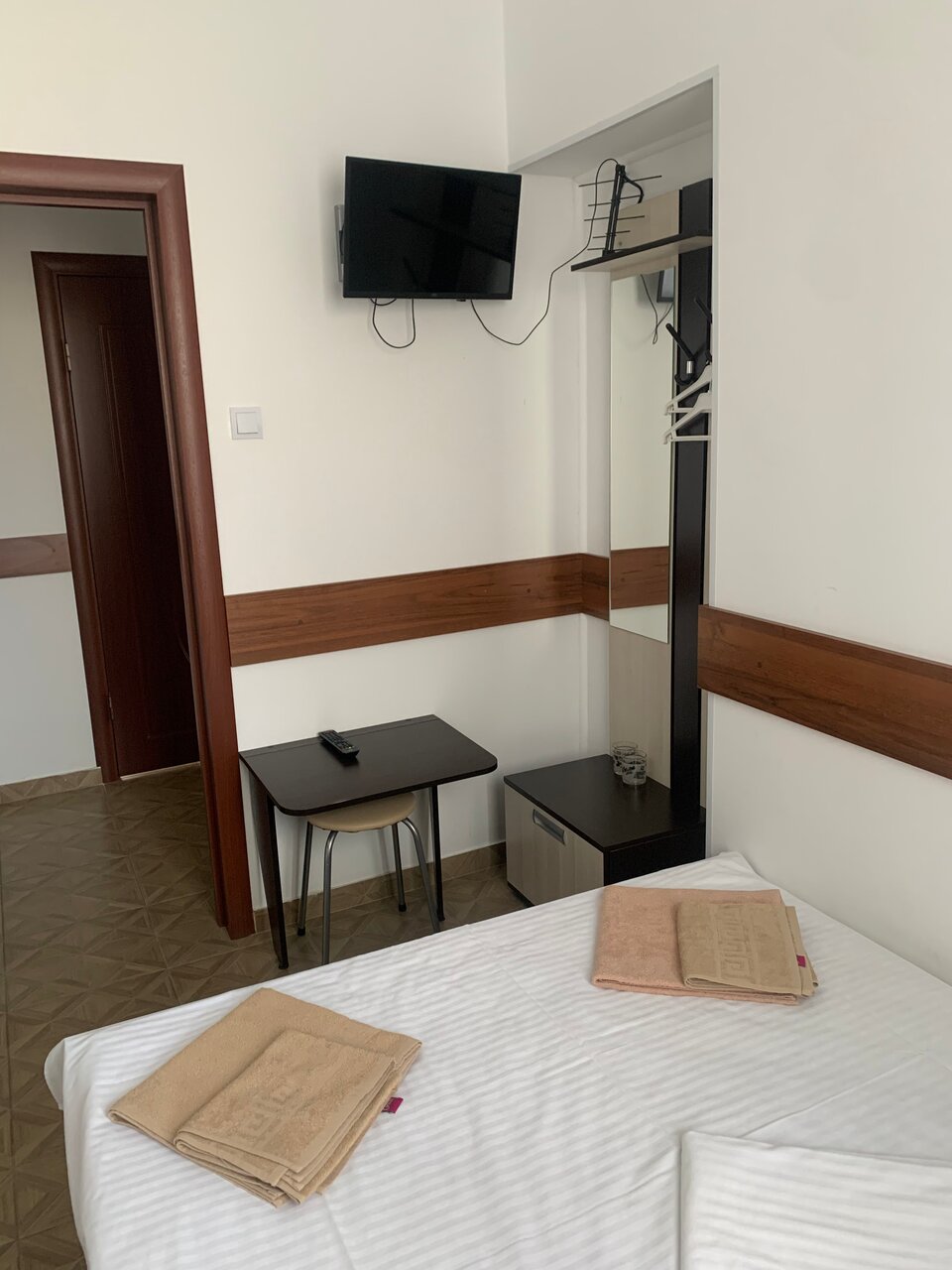Отличная гостиница, чтобы отдохнуть путнику,- за невысокую цену предлагается теплый, уютный , чистейший номер (относительно чистоты говорю с уверенностью, так как ходила в светлых носках( к минусу отношу отсутствие одноразовых тапок) с удобными кроватями, белоснежным бельем, мягкими полотенцами, феном для сушки волос, зубными щетками с пастой, даже , , такая мелочь, как ушные палочки и ватные диски) .Холодильник , чайник кулер , посуда находятся в коридоре, в двух шагах от номера , а также бесплатная парковка и прелестный администратор)