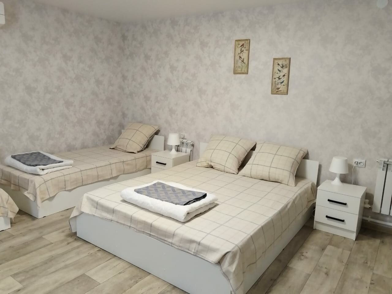Уютно, чисто, красиво. Есть абсолютно все: от чая и кофе до нескольких видов шампуней и гелей для душа. Пастельное белье и матрасы — супер. Чистота идеальная, порядок — мечта перфекциониста. Парковочное место в наличии и под щамком. Встретят хоть ночью, проводят хоть с петухами. Ночью — полная тишина, трассу не слышно от слова совсем. На въезде в населенный пункт есть круглосуточное кафе-столовая — сытно, вкусно и недорого. К сожалению, были уставшие с дороги и не сделали фото апартаментов, но фотографии хозяев на ресурсе — истинная правда.