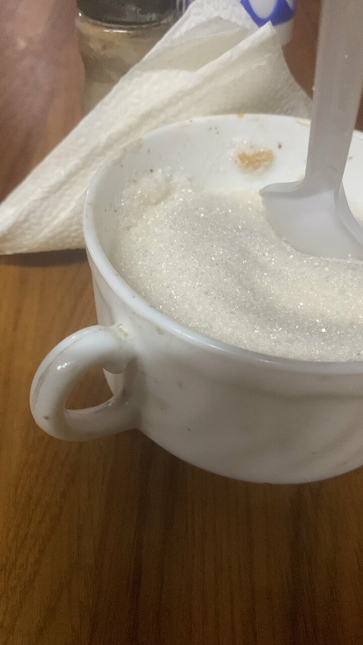 - Липкие столы в кафе.