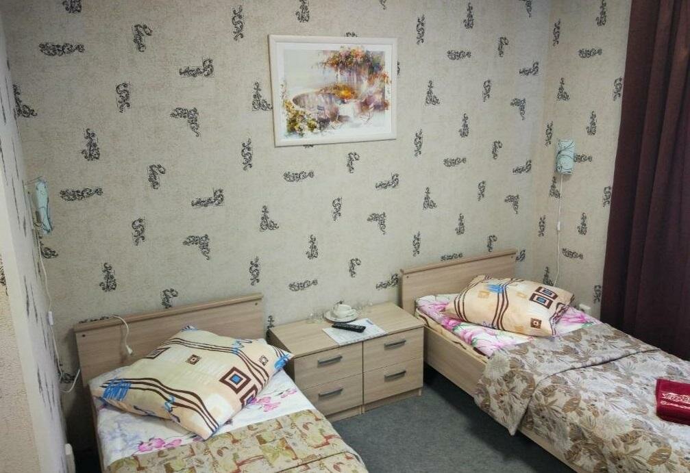 Останавливался с 6 по 8 июля в номере ‘Стандарт’. В номере — 2-спальная кровать, санузел, ТВ, кондиционер, чайник, шкаф, 2 тумбочки, маленький стол, стул. Душ — на этаже. Вежливые администраторы.