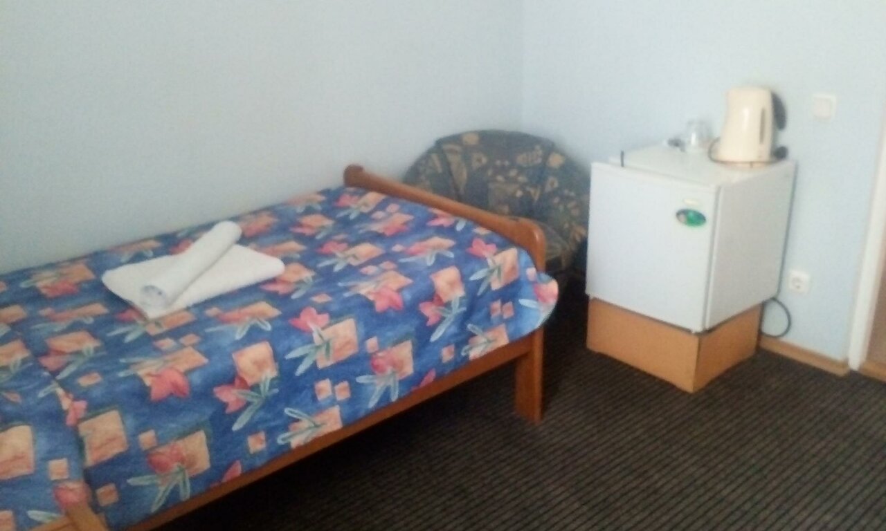 Номер с одной двуспальной кроватью и собственной ванной комнатой. Также, в номере есть зона отдыха, телевизор и косметические принадлежности. В 2022г. в номерах проведен ремонт. Изменился интерьер.