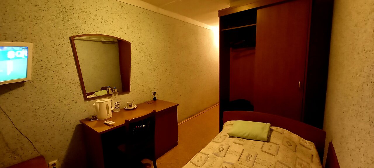 Ну, что Вам рассказать ребят, если есть другой вариант, выбирайте его. В целом, в гостинице чистое белье, полотенце, полы. Чтобы была вода теплая, близко к горячей нужно ждать мин 10-15 с крана, с душа я не дождалась. Слышимость офигенская, что людей рядом, что каждый проезжающий автомобиль. В номере шкаф почти разваливается, сверху облупившийся потолок. Холодно, но под одеялом тепло кстати. Пойду на завтрак, за девяточкой и пятерочкой, повернув направо и потом налево. Персонал хороший.