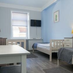 - Наличие кухни с посудой и холодильником.; Вежливый и отзывчивый персонал.; Уютные и светлые номера.; Хорошее расположение (магазины, кафе, достопримечательности рядом).; Чистота и комфорт в номерах.