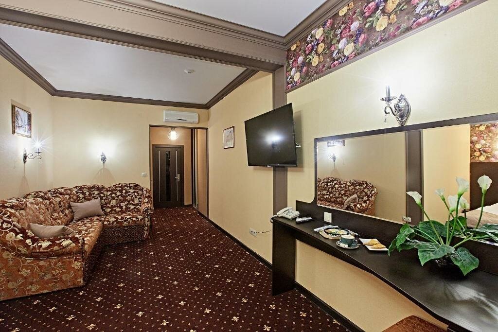 Были в этом заведении всего лишь одну ночь в люксе, ну ,что сказать номер сам конечно отличный ,но….. чайник должен ведь быть это же люкс полотенца дубовые порезаться можно ,пол ночи стуки грюки как на стройке выспаться не удалось , душевая кабина это нечто, кто так делает угол прям по середине комнаты разбит палец на ноге но в номере элементарно нет салфеток, утром выпить кофе нужно бежать за чайником на первый этаж. Сервис на 0 , так почему же он люкс? Были с 4 на 5 декабря , и зачем в номере телефон если на другом конце провода ни кто всё равно не ответит по тому ,что барыня изволит пОчевать Итог : вторично я бы этот ‘ гостинный дом ‘ не посетила !!!! 2 звезды чисто за сам номер.