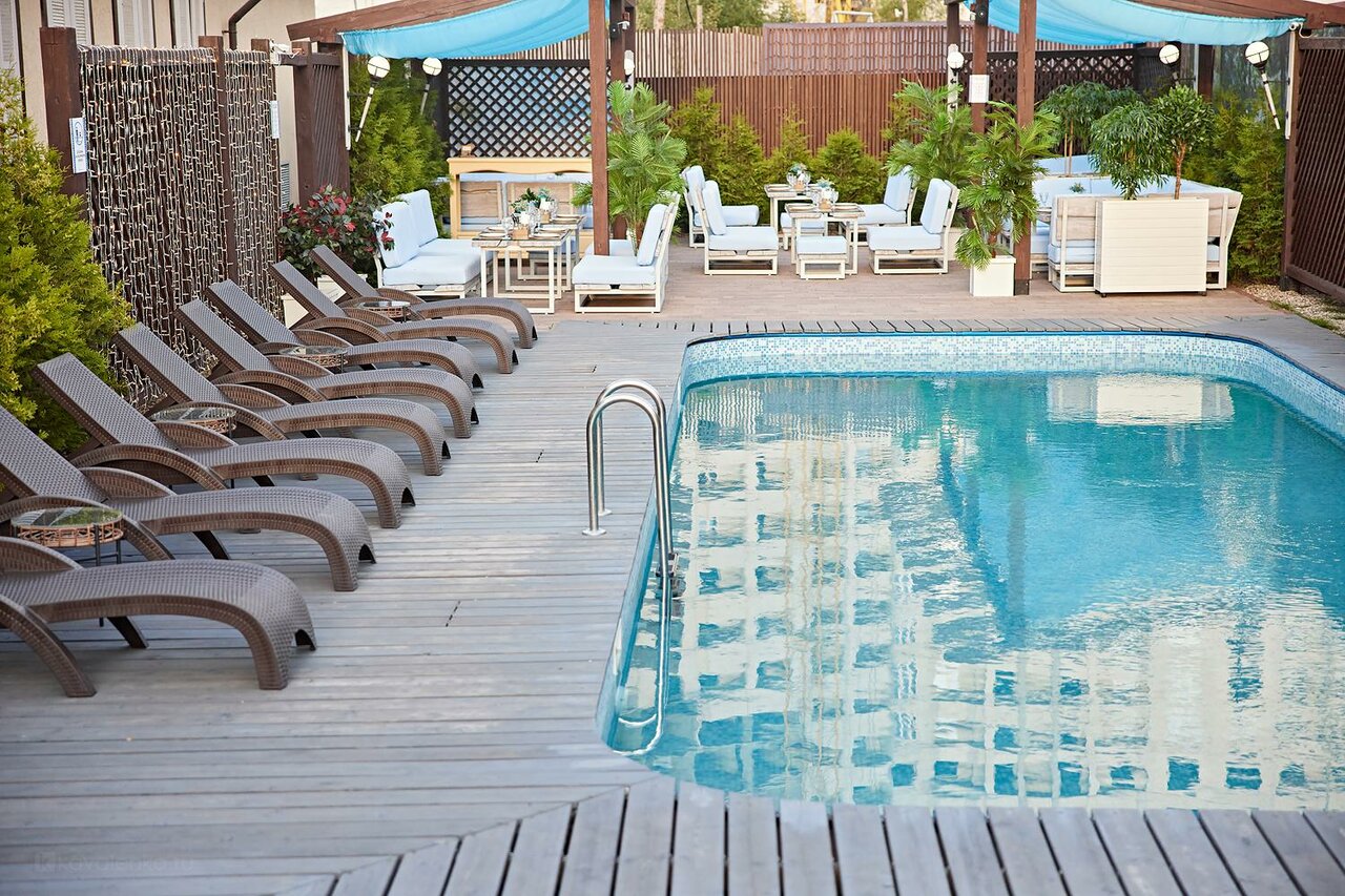 Обслуживание хорошее. Вежливый и приветливый персонал. На рецепшене чисто, красиво. В гостиничных номерах не был, а вот бани отменные. В домиках просторно, чистые бассейны, хорошие парилки. Из минусов, пошерканые бильярды и кии, но к сожалению это во всех заведениях, видимо не хотят вкладывать в это направление) а так, место для досуга с компанией на 5 балов