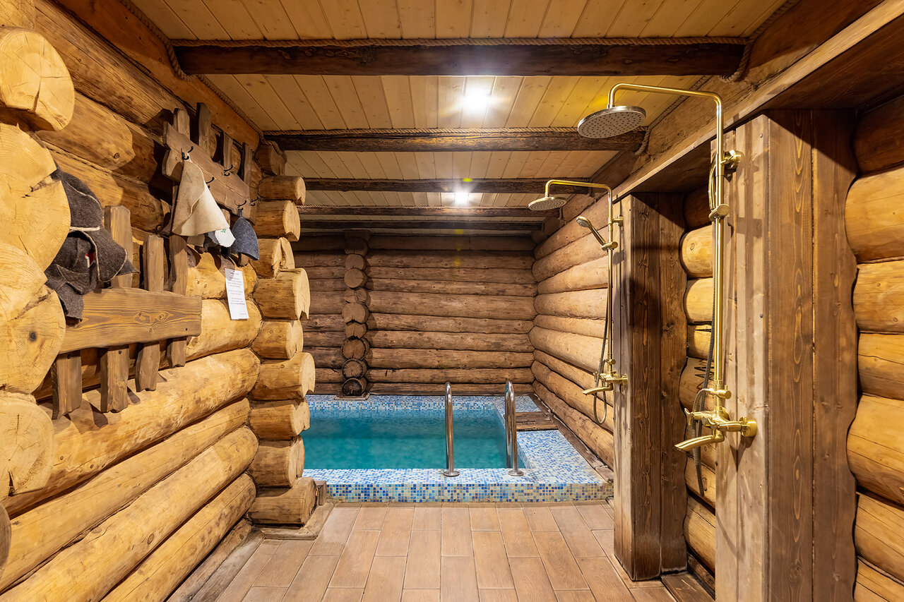 - Деревянная баня (малая) с бассейном, столовой и комнатой отдыха на большую компанию (до 8 чел.). Будние дни после 18.00, Выходные до 4 часов. 1400₽