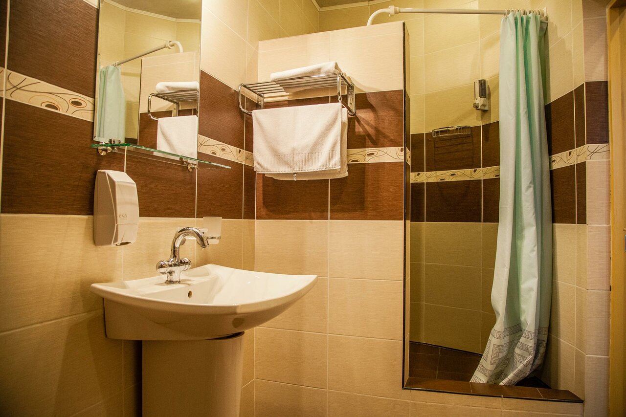 Неплохо придумано, но видимо очень давно. Пошарпано и грязно. Уборка- не конёк отеля. Тапочки, полотенца, фен, шампунь и гель для душа- в норме, НО холодильник грязный и с запахом, полы грязные, шторка не дотягивает до края сантиметров на 15, поэтому вода льется на пол(там типа душевой кабины). Единственное, что отмечу, красивый фасад, фойе, хороший администратор, и отдельное спасибо кухне- вкусно (яичница, пюре с котлетой, каша рисовая, блинчики и сырники).