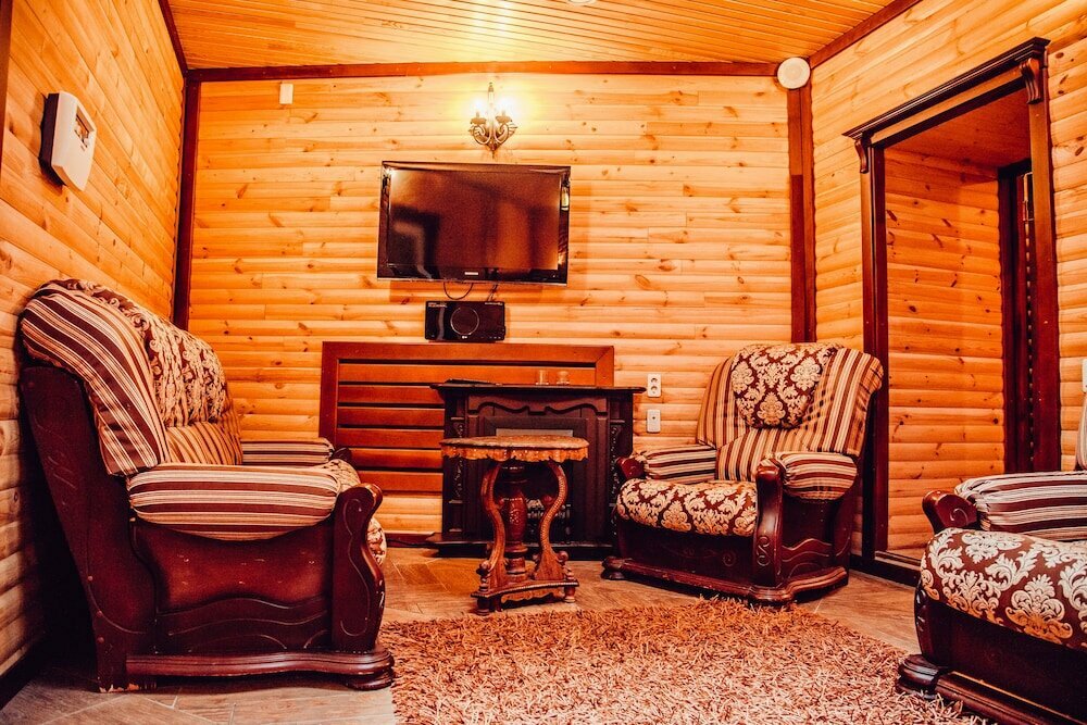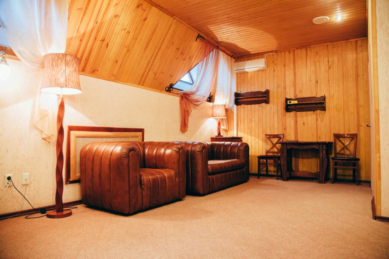 Взяла номер люкс, рассчитывая на бо’льший комфорт. Так вот, в номере есть чайник, но нет чашек, есть халаты и по три полотенца, фен, кондиционер. Были с четверга по воскресенье, за это время ни разу не пришла горничная. В ванной только один пакетик с гелем для душа и один пакетик с шампунем, больше ничего. При заезде по бутылке воды 0,5 и всё. На потолке увидела паутину. Самым положительным для меня оказался завтрак, которым можно немного и пообедать. Номер просторный, двуспальная кровать, кресло, диван, который ракладывается типа ‘раскладушка’, стол, камин, инфракрасная сауна (в которой осталось полотенце от предыдущего посетителя, просто на нем явно читалось, что там кто-то сидел или лежал). Поездив по всей стране, могу сказать одно, это не люкс, максимум комфорт, а так чуть больше чем стандарт и то за счет площади номера. Моя оценка 3 балла только за то, что было хорошим.
