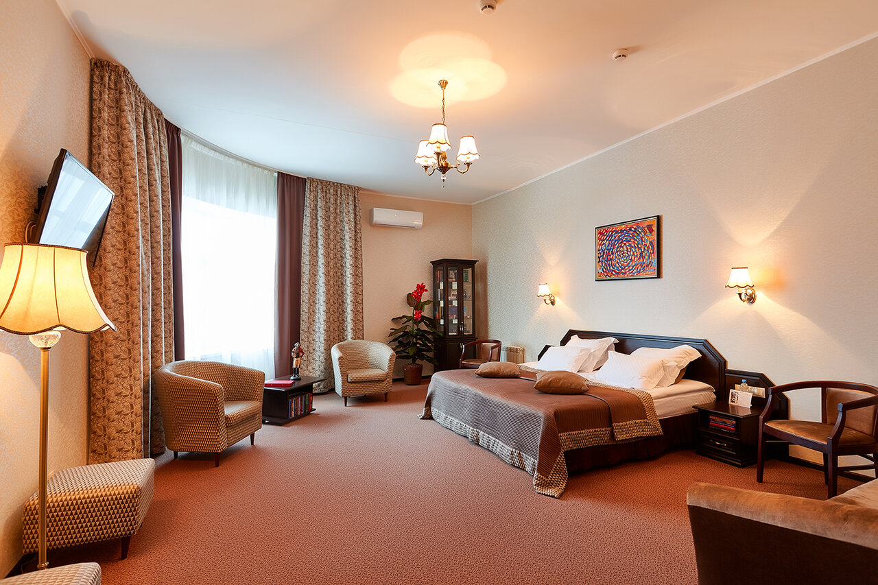 В целом гостиница понравилась. Чисто, хороший интерьер. Персонал приветливый. Неудобство доставило то, что в части номеров во внешнем полукруглом фасаде невозможно нормально открыть окна из-за двойного остекления. В двухкомнатных номерах явно не хватает шкафов или комодов в спальных комнатах.
