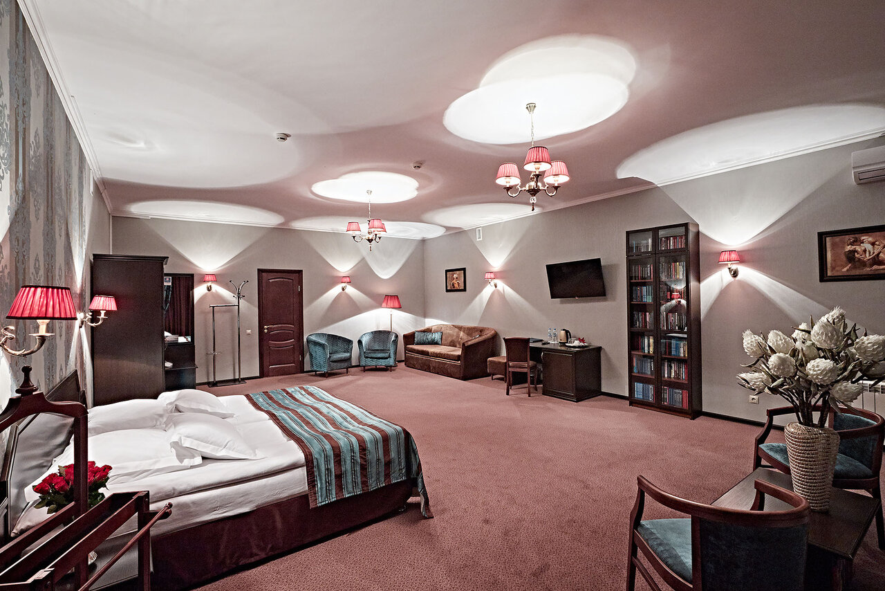 Очень понравился отель, с его интерьером под классику и большим разнообразием книг, которые представляют собой элемент внутреннего декора, в тоже время эти Книги в свободном доступе, даже в супер фитнес зале при отеле. Бассейн, который открыт для посетителей — это отдельная позитивная тема, очень приятно оказаться здесь после длительной утомительной дороги, получить заряд сил. В СПА при отеле прекрасный, приветливый персонал, а массаж — это ещё одно ценное дополнение. Мне здесь все очень понравилось. Большое спасибо графу Алексею Толстому, а точнее его потомкам, которые позаботились о создании образа отеле в стиле того времени.