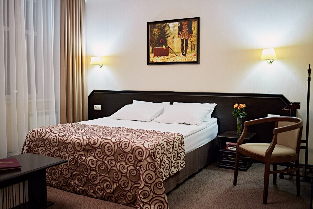 Удобства: — Номера от 3000 ₽/ночь с кондиционером, Wi-Fi, мини-баром, ТВ, санузлом. — Ресторан, бар, кафе, банкетный зал, конференц-зал. — Крытый бассейн, сауна, тренажёрный зал, SPA, салон красоты. — Бесплатная парковка, платный трансфер (аэропорт/вокзалы). — Услуги: прачечная, химчистка, носильщик, консьерж, детские кроватки.