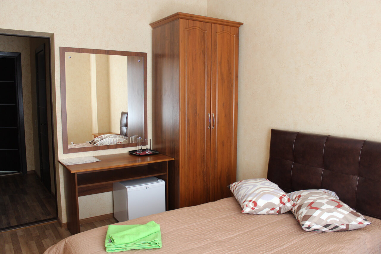 - Уютные номера (разные категории, хорошая звукоизоляция).; Подходит для спокойного отдыха (без шумных компаний).; Низкие цены (одни из самых доступных на рынке).; Возможность заказа еды из соседнего ресторана.; Чистота в номерах и сауне.