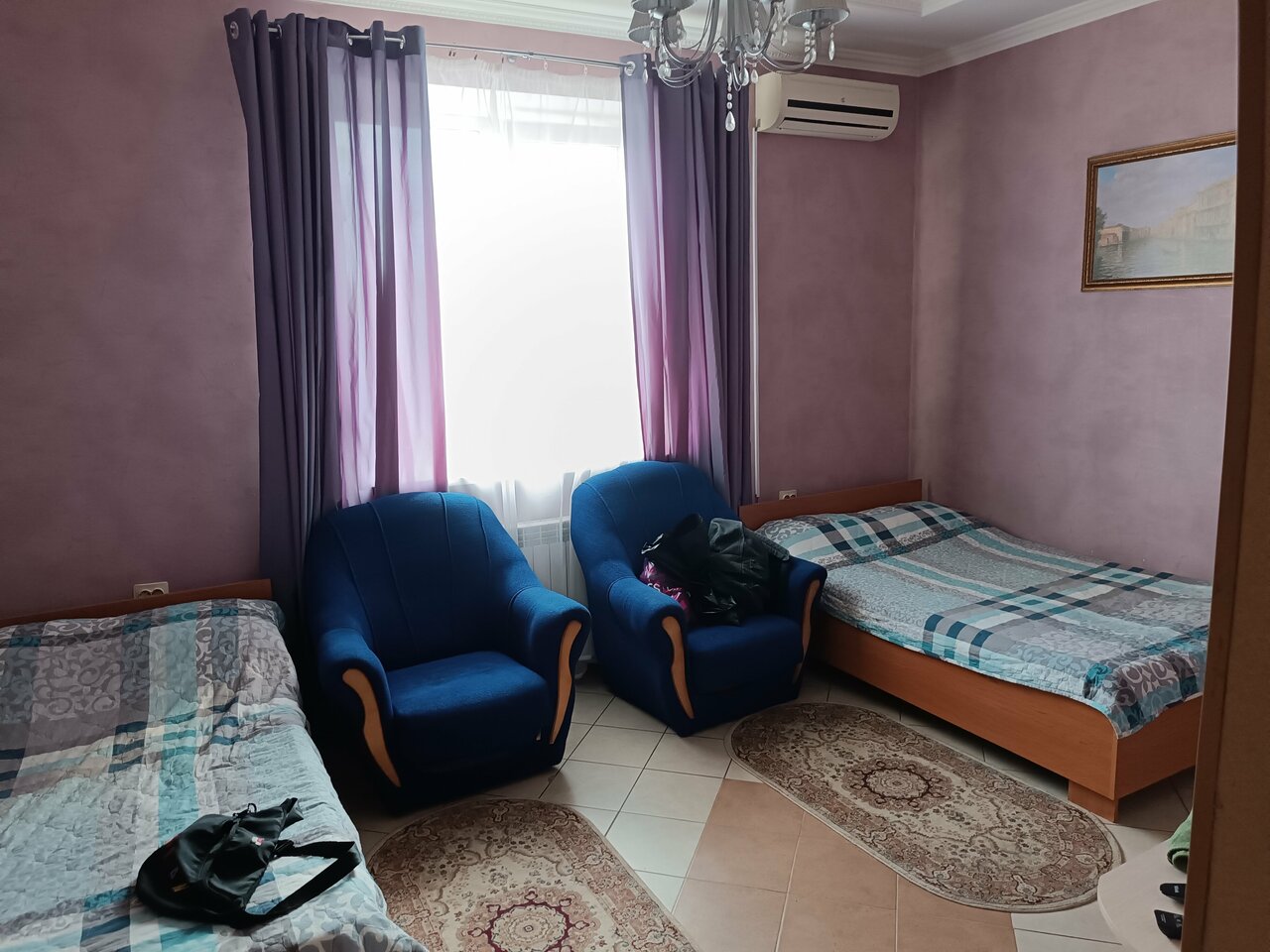 Четырёхместный номер, уютный, с видом на море и горы.⠀Номер с балконом. Имеется для отдыха в номере спутниковое телевидение, бесплатный интернет. Кондиционер, холодильник. Ванная комната в номере.⠀Июнь - 2200 р.Июль - 3000 р.Август - 3500 р.