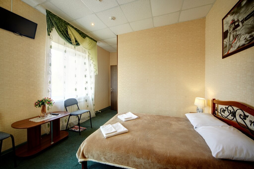 Номер чист. Бельё свежее. Полотенец достаточно. Персонал приветлив. Предлагается завтрак, обед, ужин. Парковка под окнами, закрытая. Место для путешественников удобное — выезжаешь легко по любому направлению.