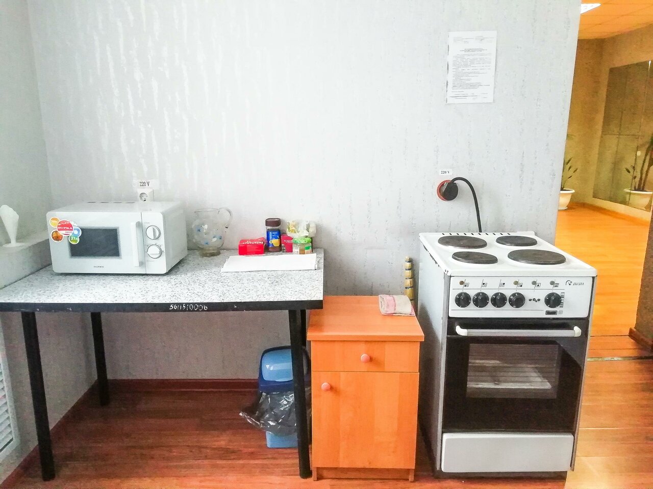 - Наличие общей кухни (плита, холодильник, стол).