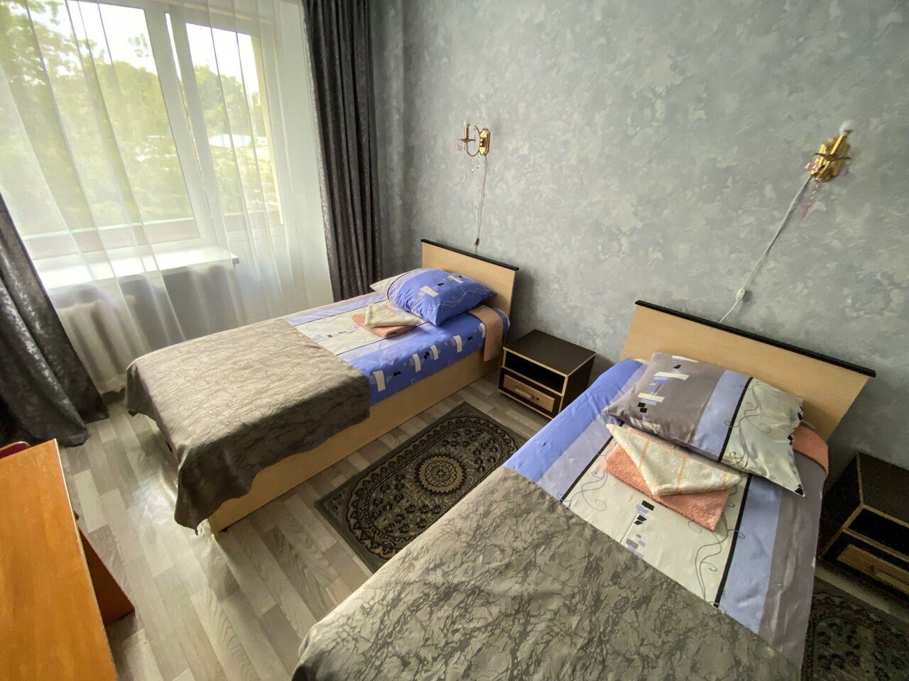 Гостиница на свой уровень неплохая. На момент 12.11.2024 номер на 1 человека стоил 1,500 рублей, за эти деньги Вы получите гостиничный разовый шампунь, мыло, комплект постельного и полотенце. В номерах есть холодильник и телевизор, небольшой кувшин и стакан. Воды бутилированной и тапочек нет, душ кое как вкручен в помещении туалета. Есть бойлер в коридоре с водой, но там не всегда есть вода. Расположение гостиницы хорошее, если Вам не нужны хорошие условия, тогда рекомендую.