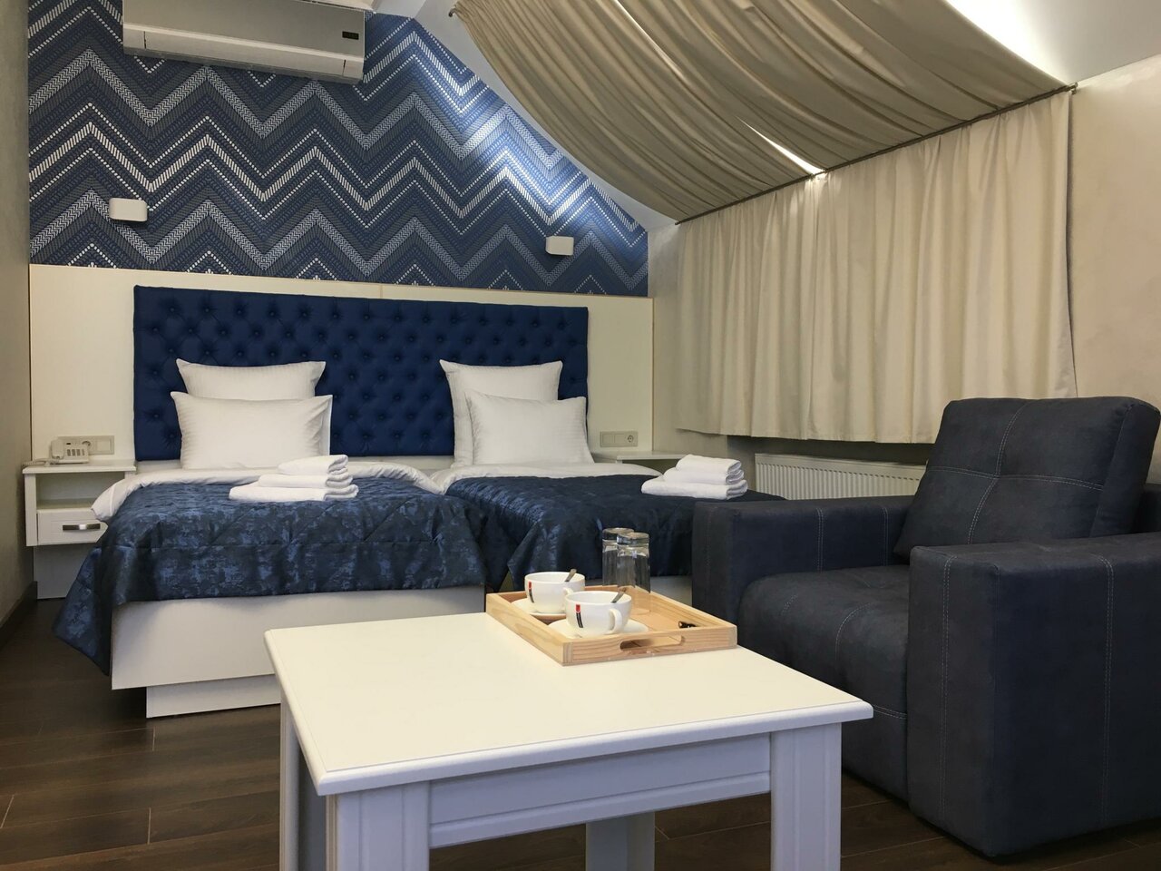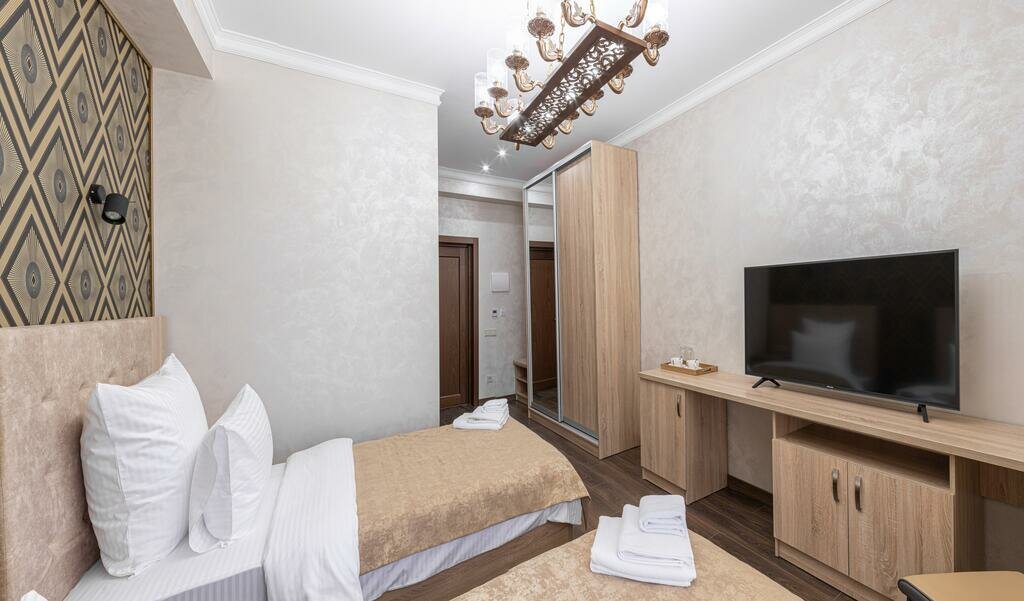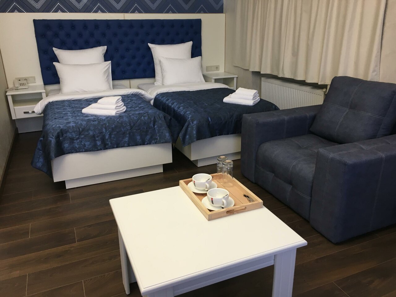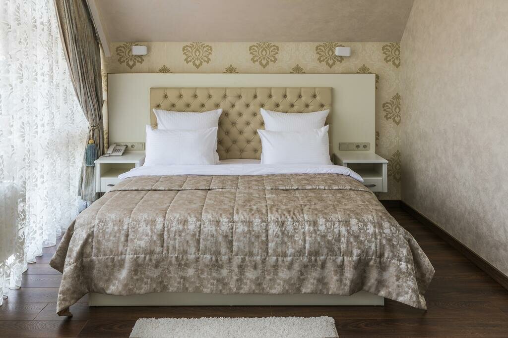 Классический 2-комнатный номер повышенного комфорта идеально подойдет как для размещения индивидуальных гостей, так и для семьи. Уютная стильная спальня подарит крепкий сон и прекрасное ощущение тепла и комфорта.