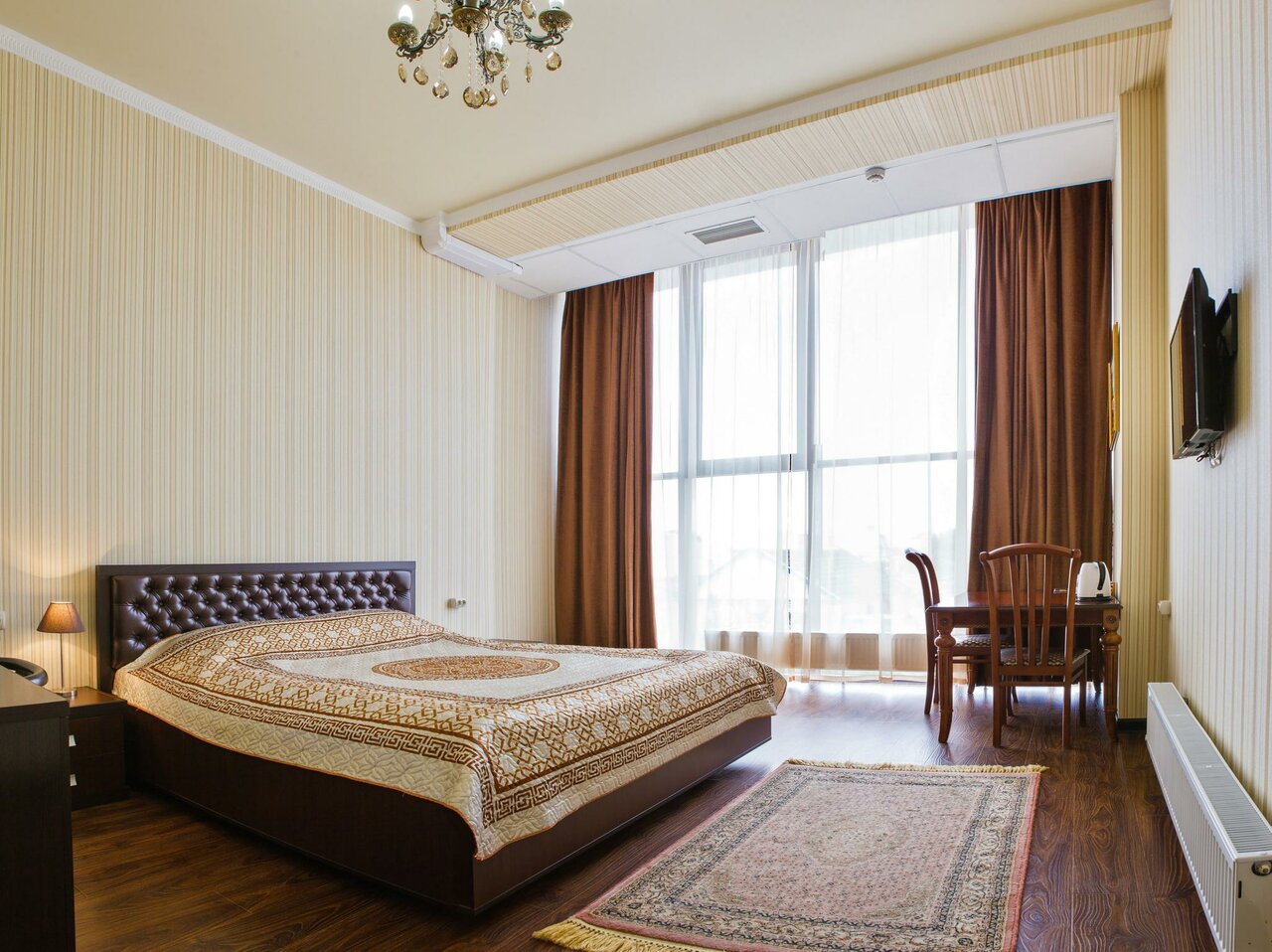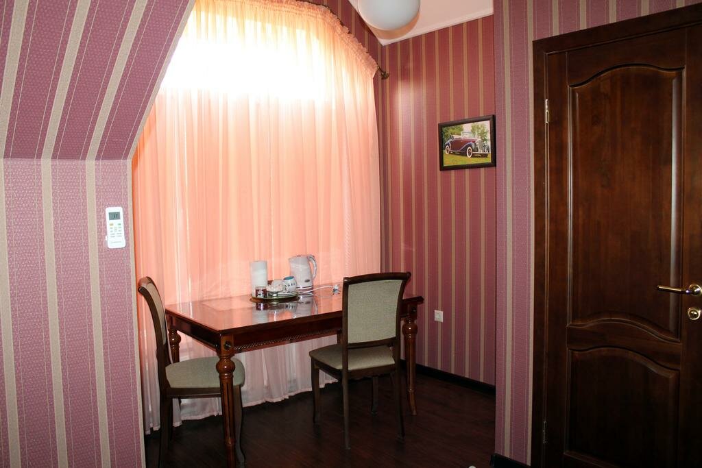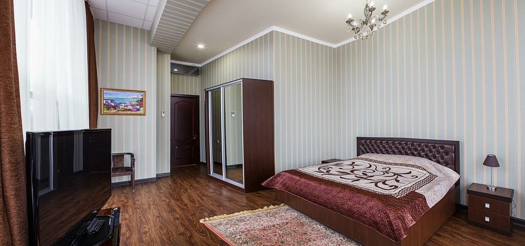 Минусы: в номере люкс странный запах, похожий на запах сгоревшей пластмассы, не выветривается. Шумоизоляция между номерами плохая, в соседнем номере ребенок громко разговаривает, слышно каждое его слово. Из плюсов : удобное расположение отеля, улицу не слышно при закрытых окнах, высокие потолки, нормальная мебель, нормальная сантехника, розеток достаточно и они там где нужно. Вплотную продуктовый магазин, недалеко Магнит. Холодильник и кондиционер хорошо и бесшумно работают, в телевизоре достаточно каналов, wi-fi шустрый.